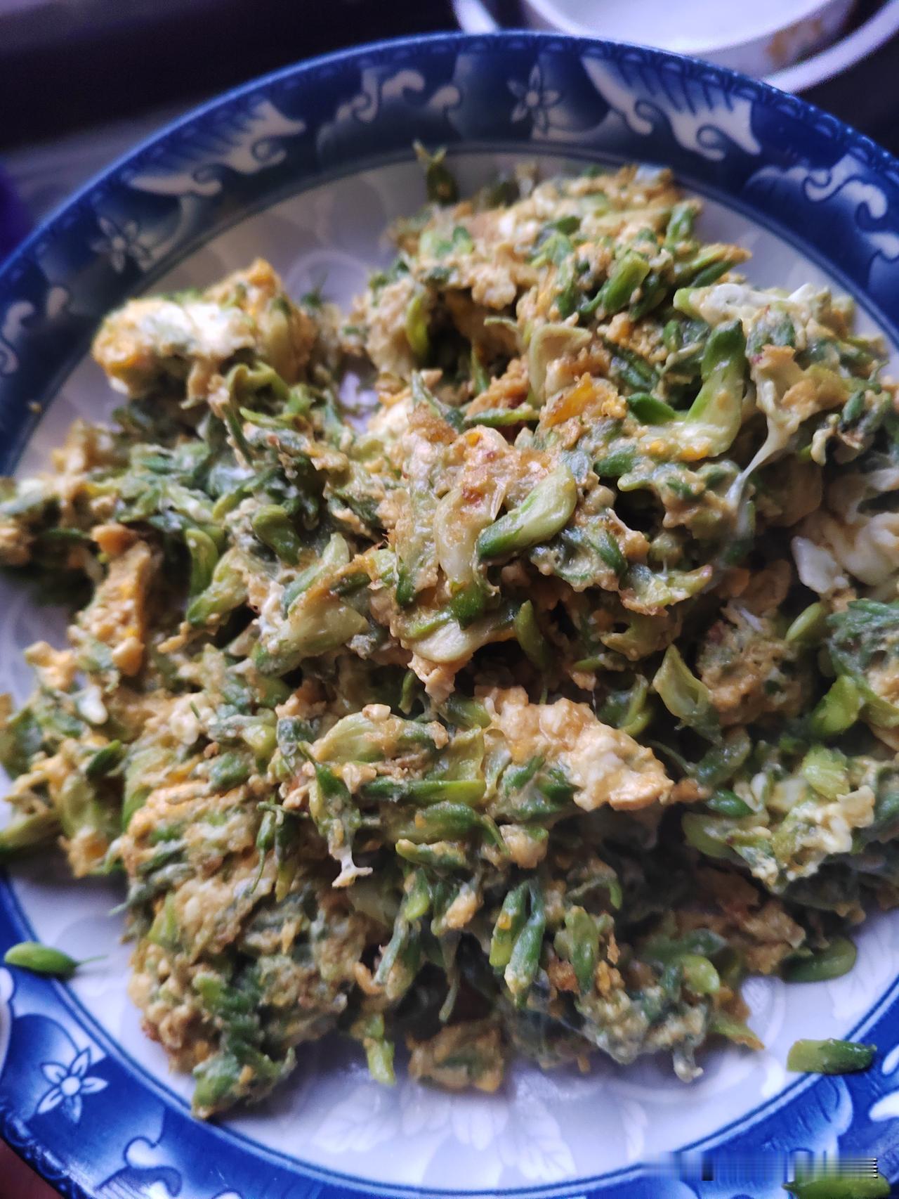 昨晚、晚饭没吃今早被饿醒了!起来后抓紧做个早餐。 槐花焯水炒鸡蛋、青菜西红柿面,
