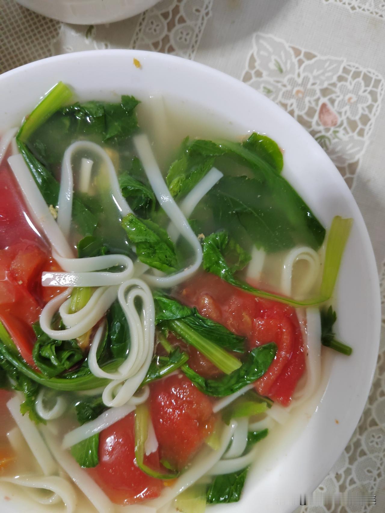 槐花焯水炒鸡蛋、青菜西红柿面,萝卜干是去年秋季自己做的。朝牌饼在小区门口买的。