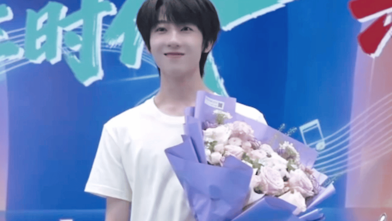 杨博文杀青捧花照 杨博文周扬杀青特辑 蓝色戏服配少年,粉色花墙衬温柔,杨博文这组