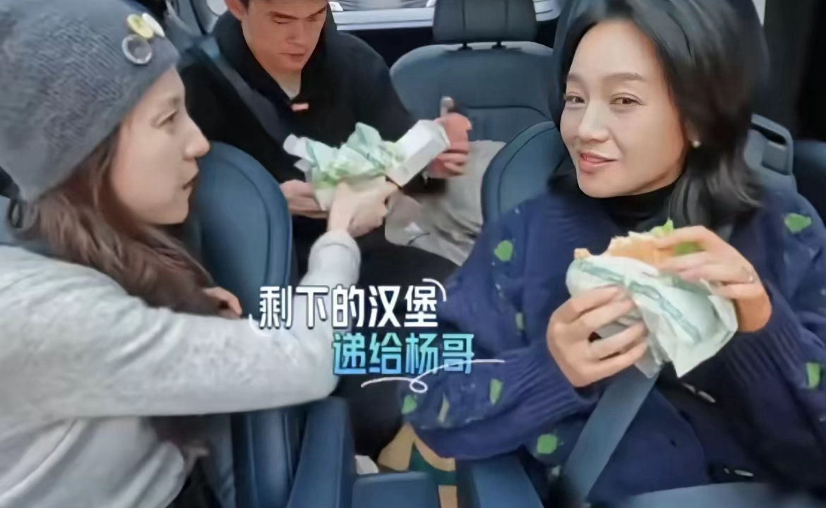 画面里几人同坐车内休闲闲聊,氛围轻松又惬意。张豆豆手中拿着吃了一半的汉堡,吃不完之后十分自然地递给身旁的孙杨,全程没有丝毫拘谨和别扭,尽显二人相处的松弛感。而孙杨接过另一半汉堡后,没有半点嫌弃,坦然接过来快速吃完,一举一动满是包容与宠溺,没有刻意作秀,完全是老夫老妻般的默契与随性。