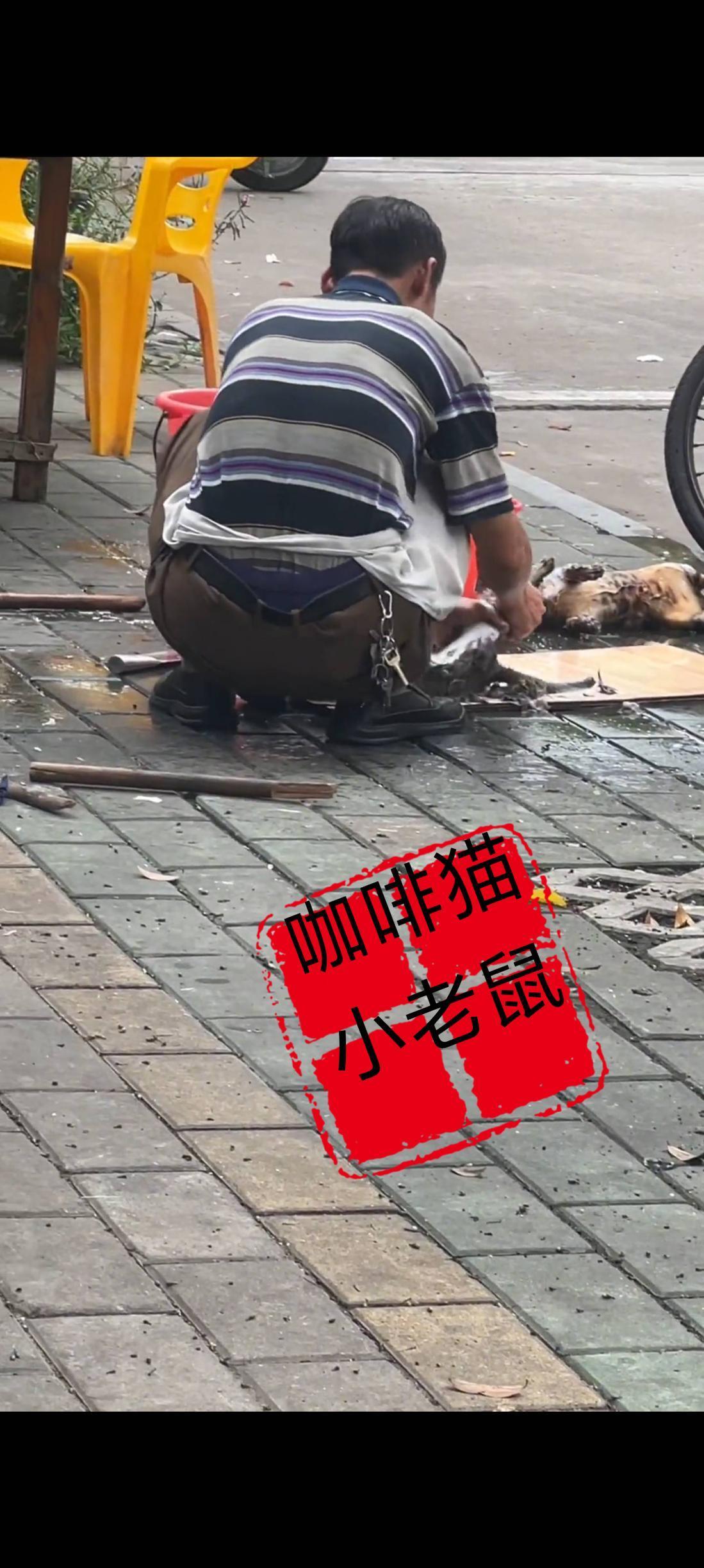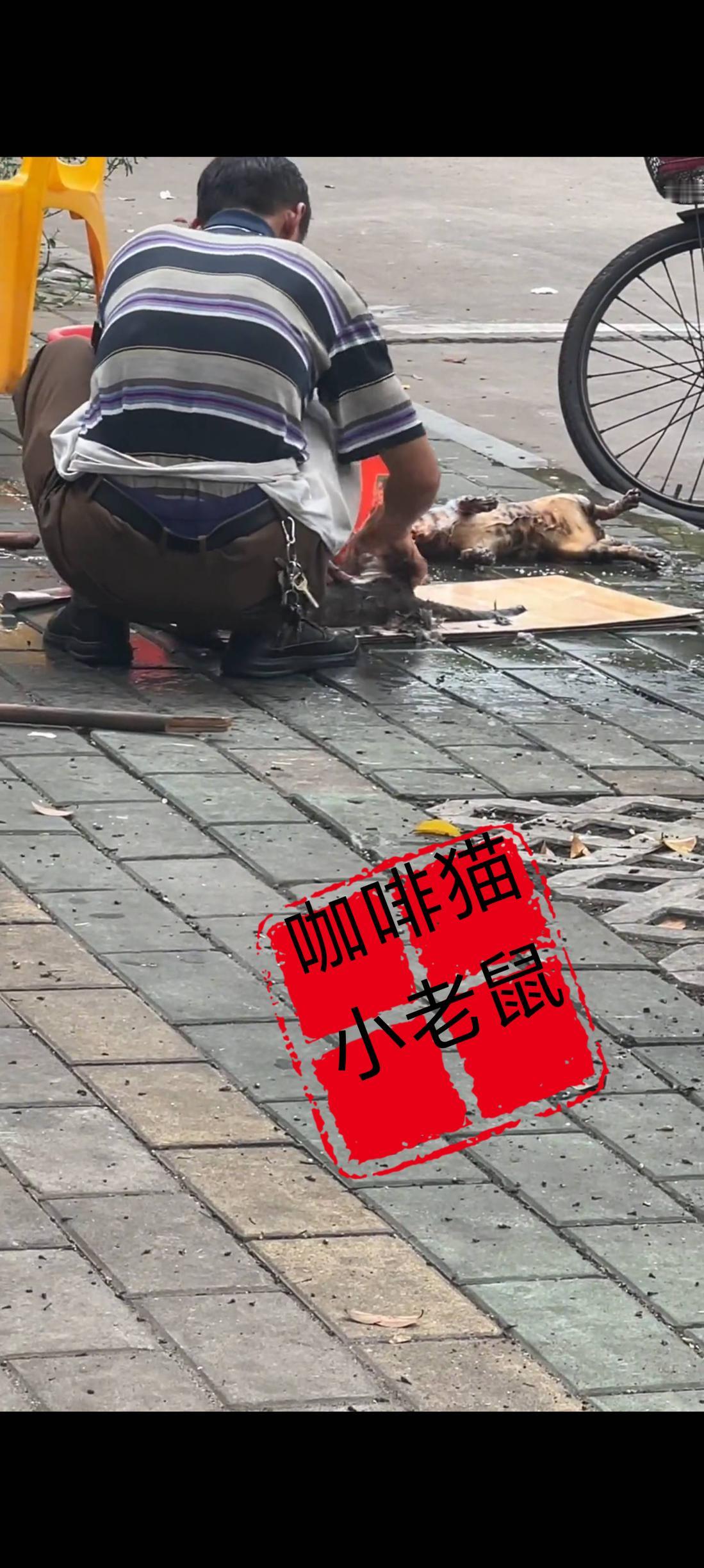 这位老板的一系列不道德的行为,也被一旁的市民用手机给拍个正着,不过为了眼前的利益这位老板也丝毫不顾及别人的感受,还是自顾自的处理地上已经宰杀好的流浪猫,此时就连路过的市民在目睹老板的一系列操作过后都连连摇头。