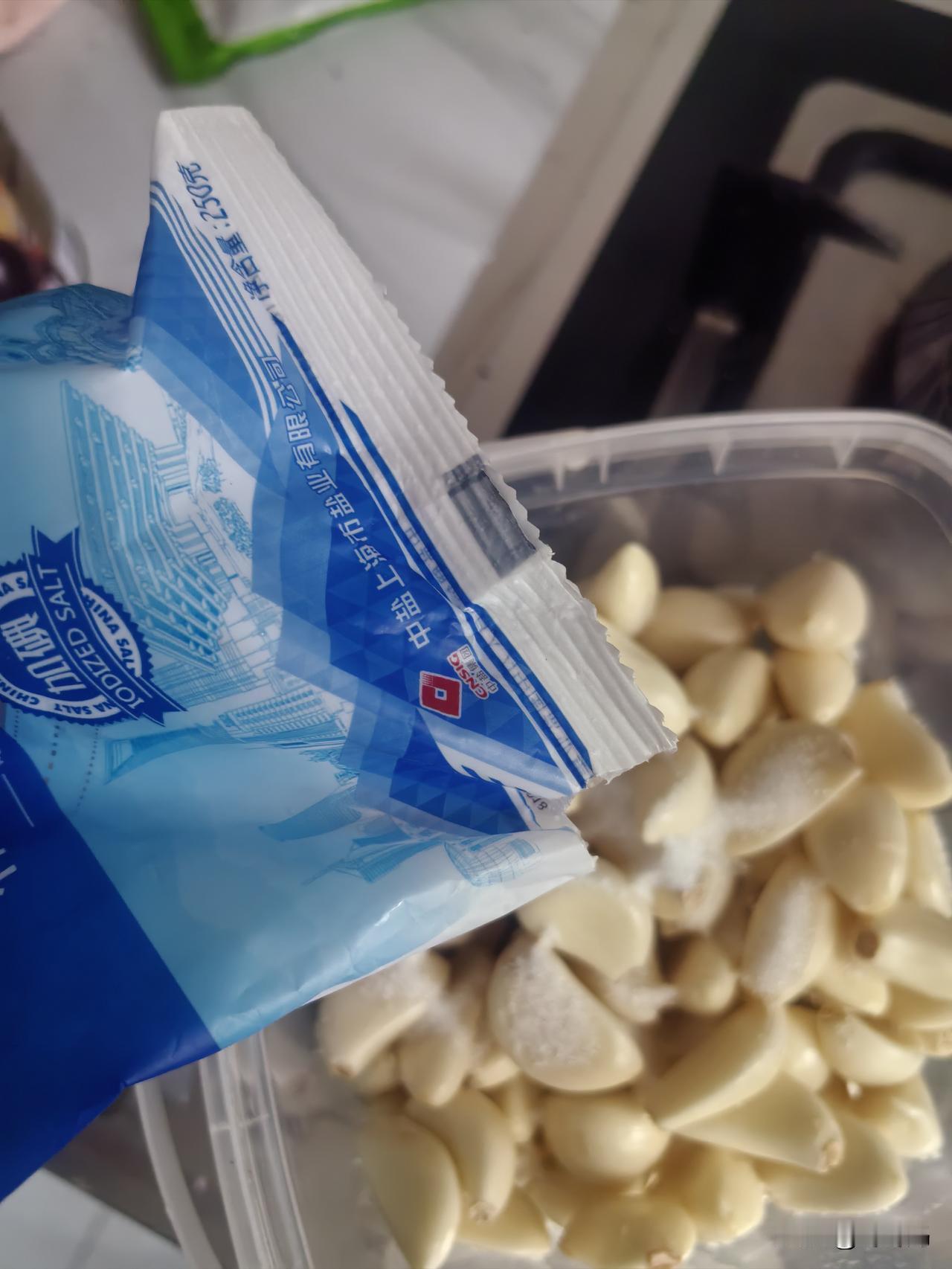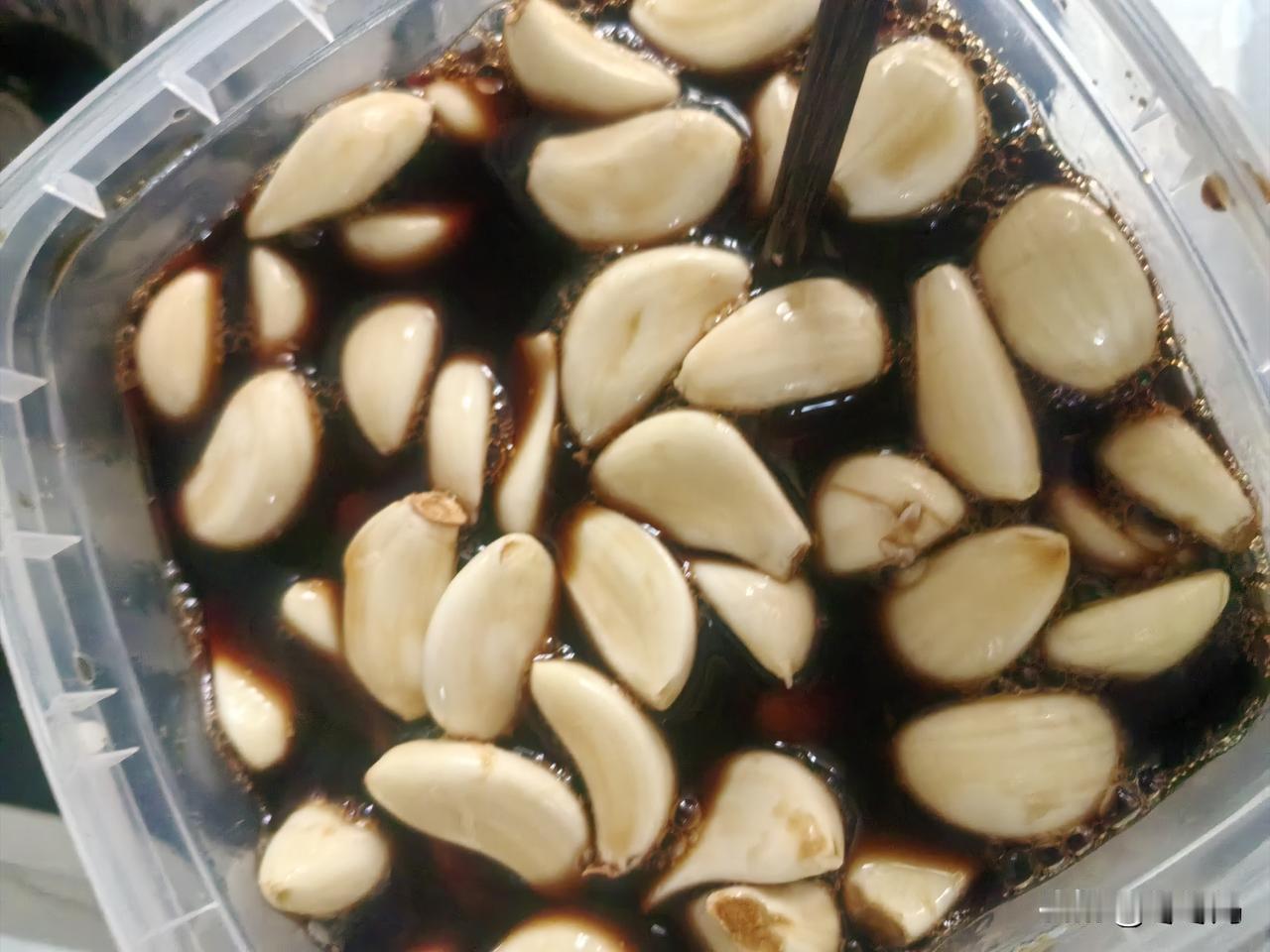 其实我不是特别讨厌吃蒜,糖蒜算是比较喜欢的人但是外面买的糖蒜也不太敢吃,因为高科技加的太多了。偶尔有一次在一个火锅店吃了一次人家泡的腊八蒜,碧绿的味道很好,就是糖蒜的味是腊八蒜的样子。想着自己也做一点吧,拼多多买了三斤的蒜,扒出了两斤大的,小的都拿来做菜。扒了大概一个小时,两瓶醋花了10块钱,又放了半斤白糖和一点盐。