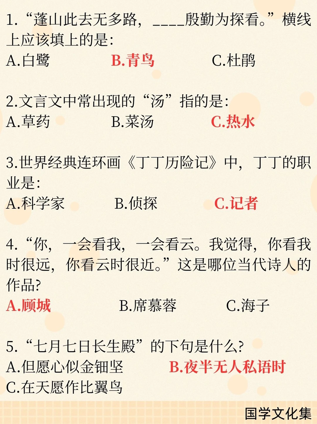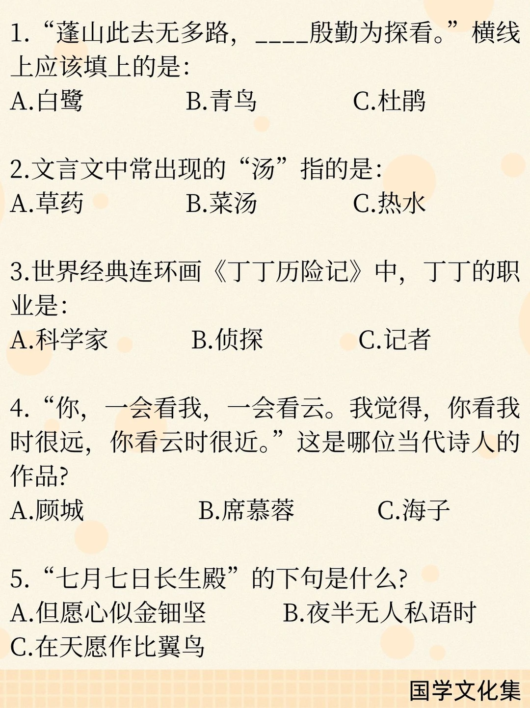 15.“七月七日长生殿,夜半无人私语时”。