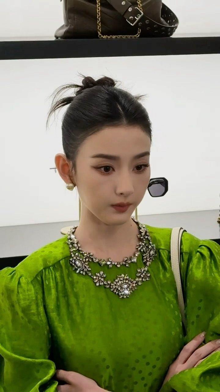 宋祖儿 VALENTINO绿色复古波点裙➕大光明造型