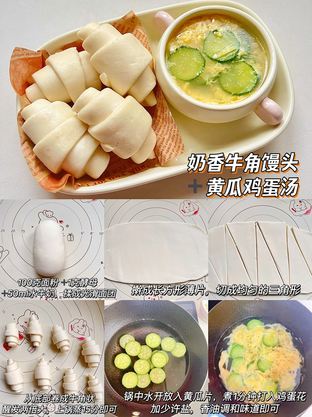🥣奶香牛角馒头➕黄瓜鸡蛋汤