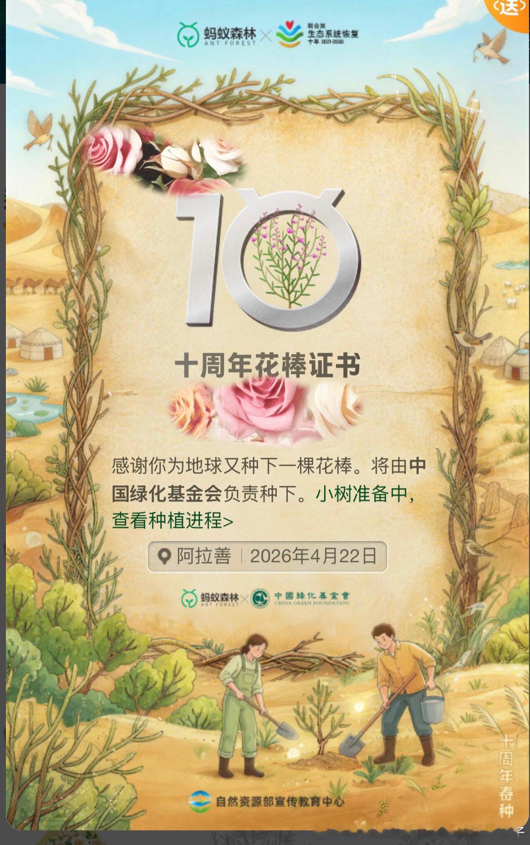 丁真蚂蚁森林10周年 ✨丁真珍珠 今天是蚂蚁森林十周年,也在阿拉善种下了一棵树,