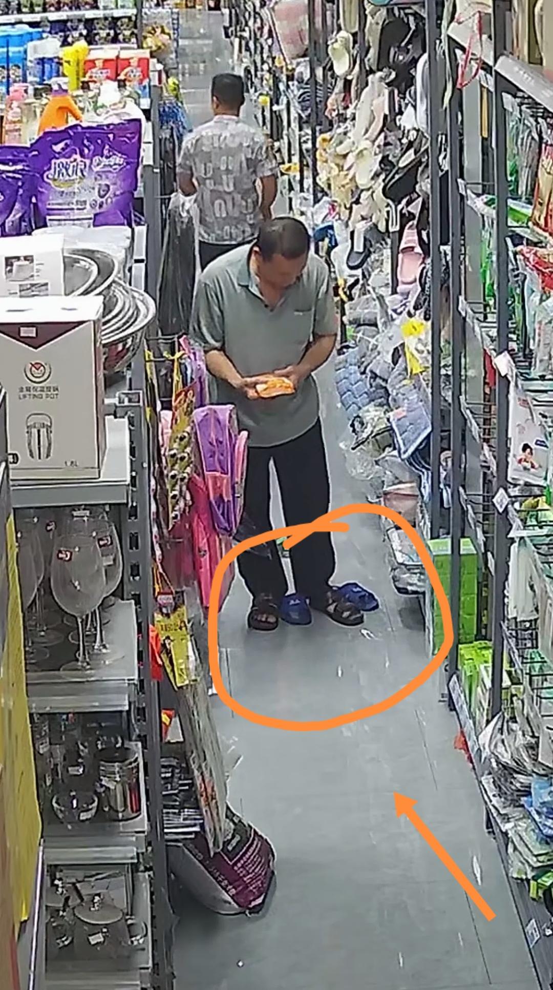 初看画面里的男子,还以为他在超市试穿凉鞋。谁能想到,他竟妄图将凉鞋据为己有,打算穿着回家!