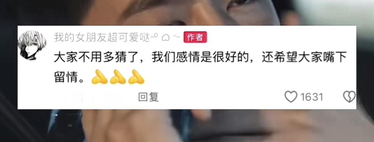 然后在网友的深挖下,发现有一个男生在评论区里叫女生老婆,而女生回复了这个男生的评论,但却完全没有反驳和解释。有网友发出质疑后,这个男生更是发出了和女主600多天的情侣火花证明。