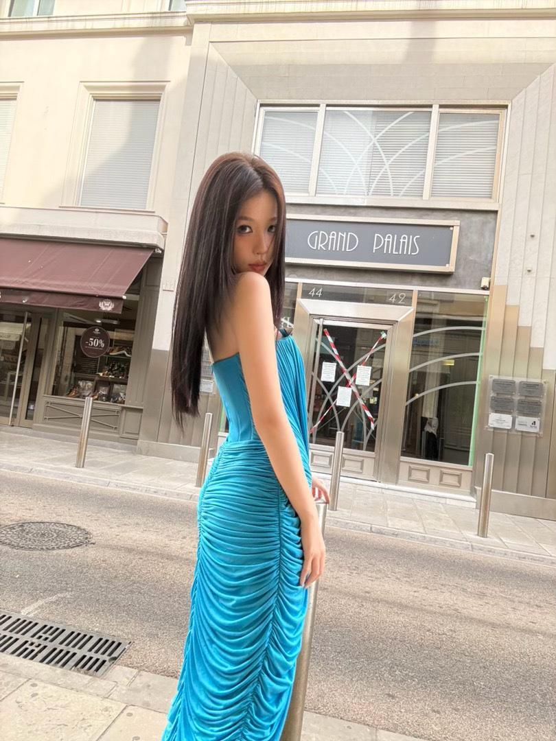 虞书欣戛纳蓝色妖姬造型随拍live图真的是美爆了!虞书欣戛纳生图