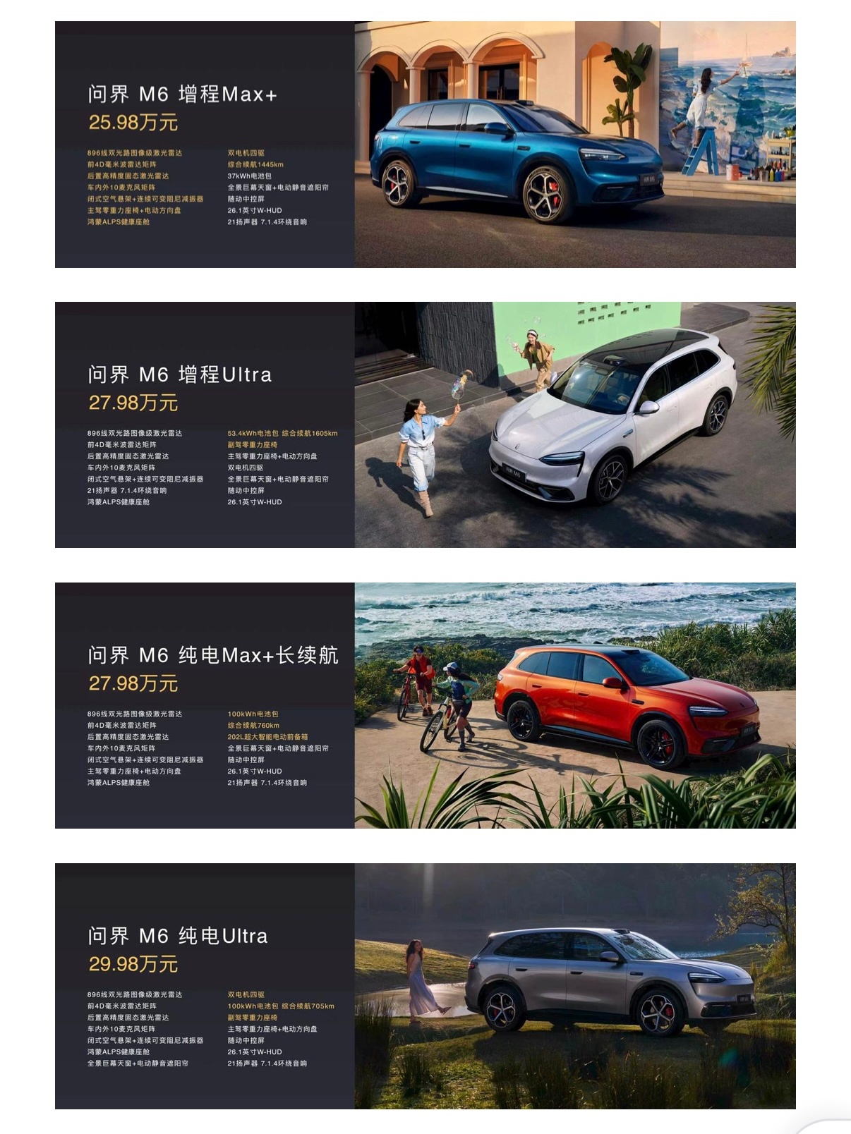刚刚结束的鸿蒙智行春季发布会,问界M6正式上市,25.98万起。主打安全。十一横十一纵车身,16处2000MPa热成型钢,乘员舱近一半都是热成型材料。双C环结构扭转刚度提升133%,门框加强15%——这几个数字说明一个问题:这台车的安全预算花得很实在。主动安全更狠。全系乾崑ADS 4.1,36个传感器,896线激光雷达120km/h能连续避障。这次提了个“防御性辅助驾驶”的概念,不是撞了才反应,是提前预判规避。还有个细节,前后备箱、踏板、座椅、屏幕这些活动部件全做了三重防夹冗余。安全不只是碰撞那一刻的事,日常也得管。今晚的发布会信息量很大,智界V9已开启小订,全新一代问界M9也在路上了。鸿蒙智行发布会