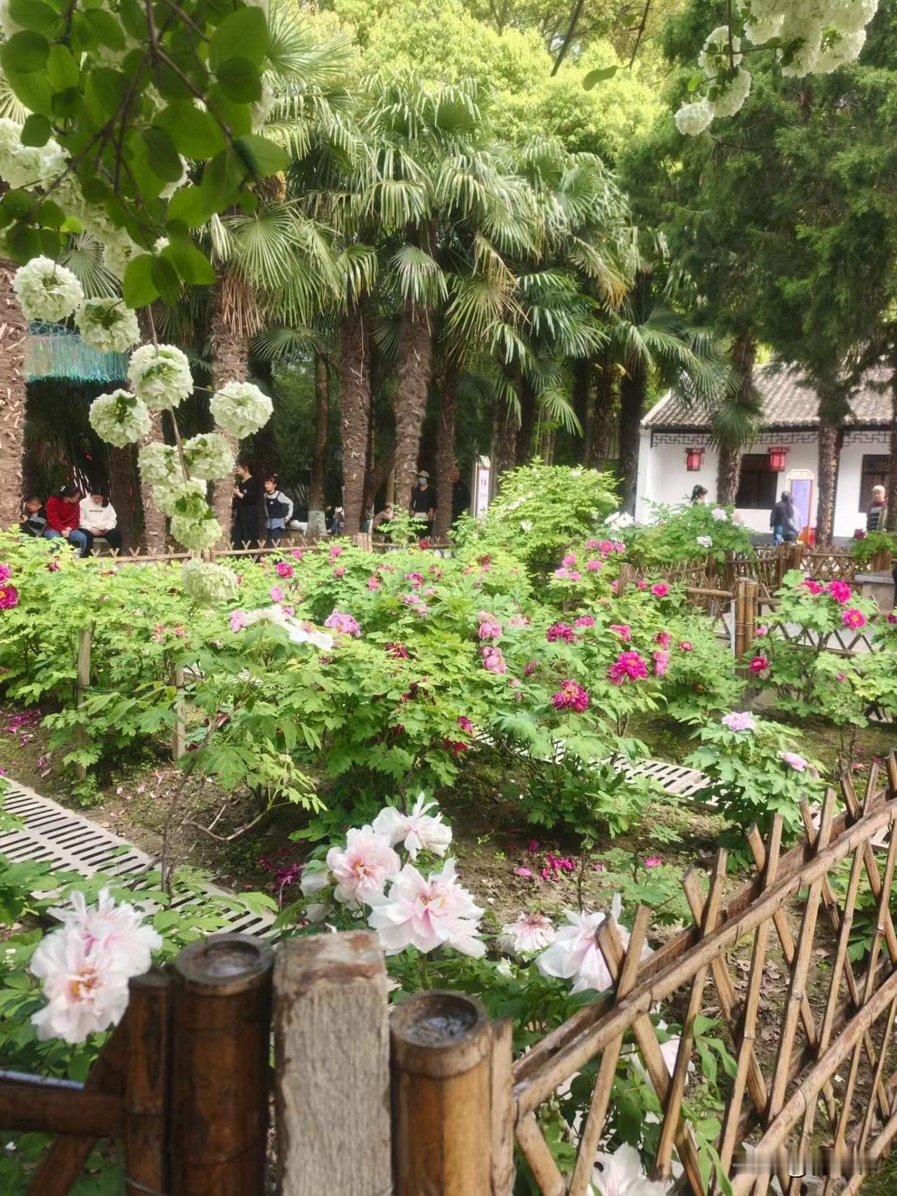 晒一张你相册里风景照春天公园的景色如此美好,一边是白绣球清清爽爽,一边是牡丹开得