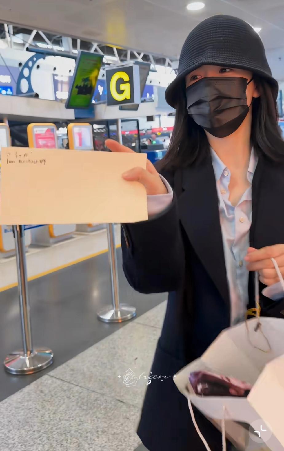 谢娜在机场遇到一个李小冉的粉丝,还让谢娜帮她把送给李小冉的礼物带给李小冉,谢娜笑着答应了。