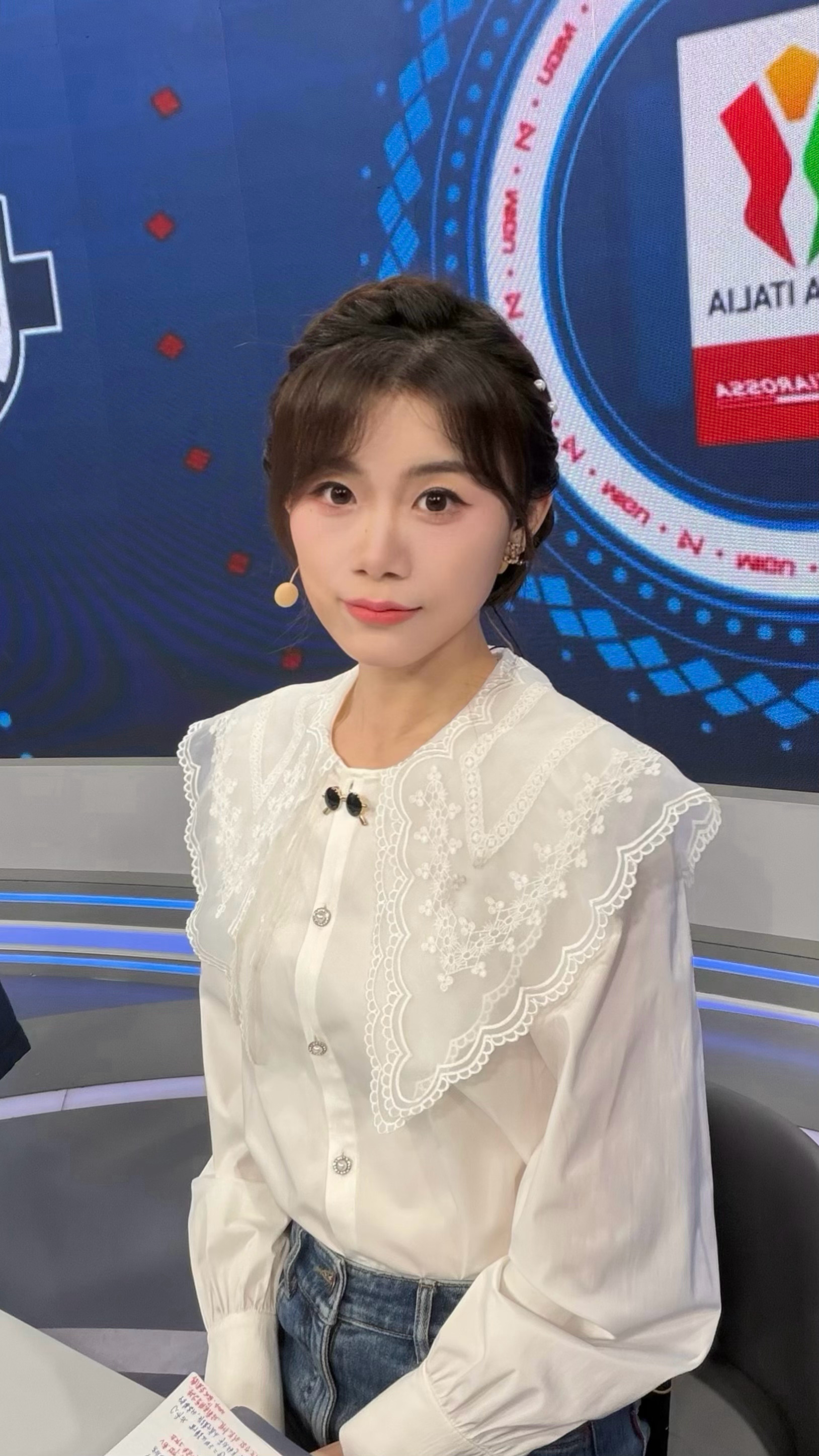很少在演播室盘发,昨天没注意一抬头化妆师已经盘好,感觉还行耶