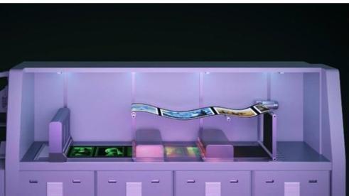 针对以上技术瓶颈,研究团队首先从结构着手,创制出一种由周期性纳米晶格构成的微米尺度半球形结构,使得单元结构呈现丰富的色彩变幻,犹如万花筒般一转千色。在规模化制备方面,团队研发了高通量按需打印与卷对卷连续制造工艺,就像报纸印刷一样,将柔性基材从一个滚筒连续输送到另一个滚筒,连续完成纳米级精度打印成型,这一技术可将低成本聚合物纳米材料快速制备为单像素性能定制的光学超材料,实现跨越多个尺度的精准制造。