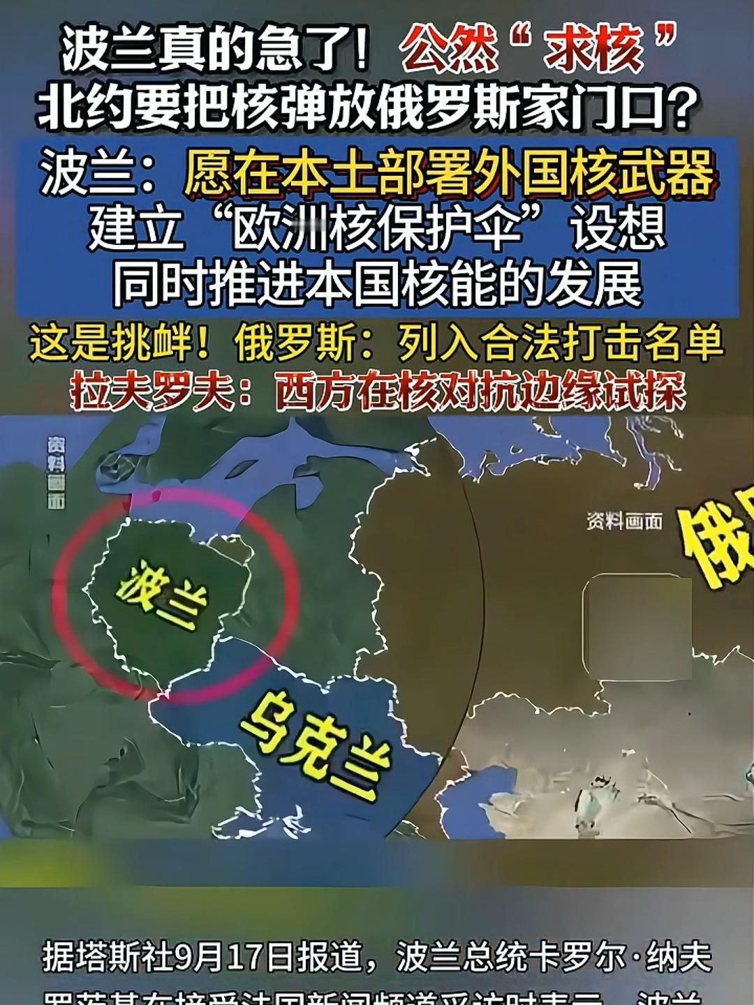应该说,法国核力量东扩至波兰,等于核威慑直接抵俄边境,压缩俄预警时间至3–5 分钟,俄无法容忍。冷战后俄多次让步,换来北约持续东扩;此次绝不退让,否则将面临核包围圈。