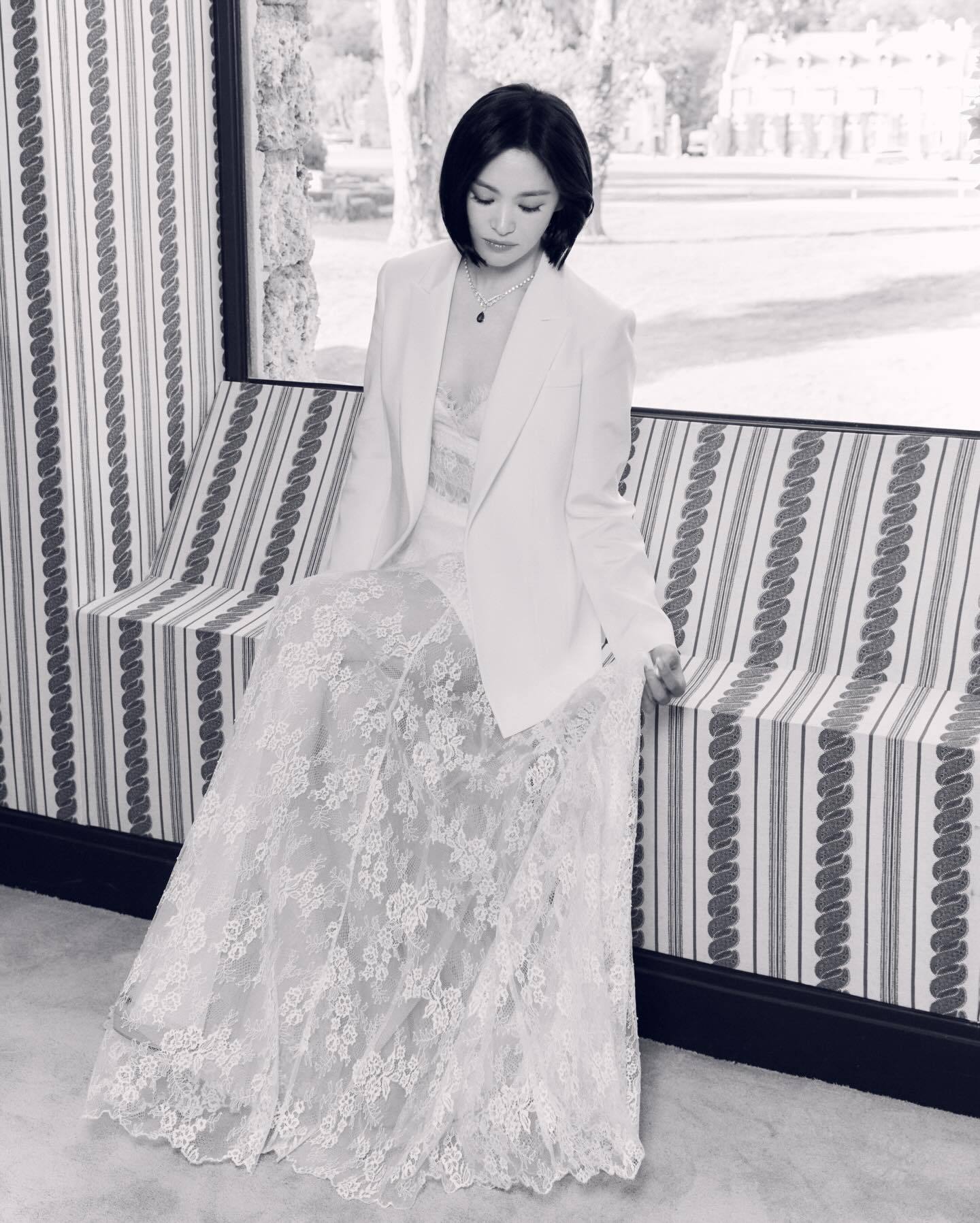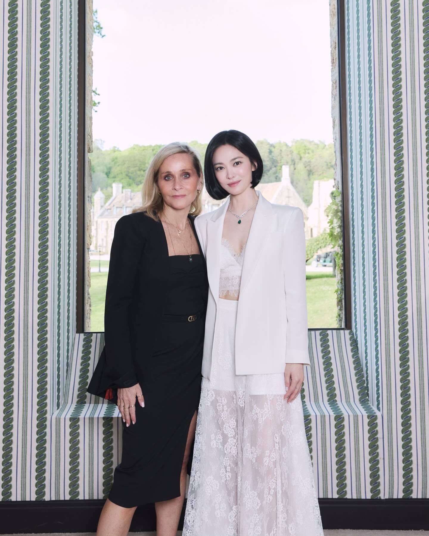 在法国参加尚美巴黎高定珠宝活动的乔妹,一身刚柔并济的All White 造型出镜拍摄图集,白色蕾丝V领吊带与半身长裙外搭同色系西装,佩戴CHAUMET Joséphine Valse Impériale约瑟芬系列圣雅·蹁跹高定珠宝,祖母绿主石项链戒指熠熠生辉,尽显从容大气的优雅气质。💎