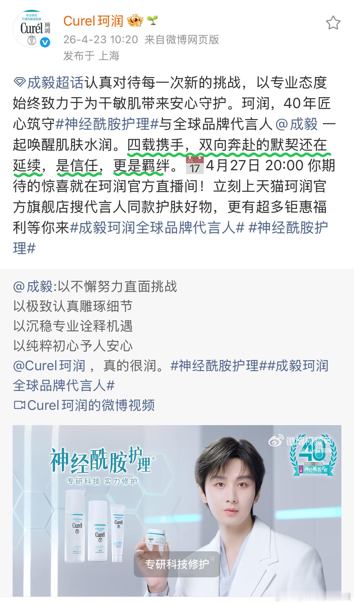 是信任,更是羁绊。双向奔赴的第4年,与的默契仍在延续!专业与匠心碰撞,用纯粹初心予人安心,我们一起为这份信任全力守护!成毅珂润全球品牌代言人