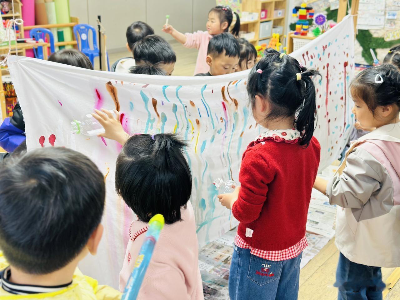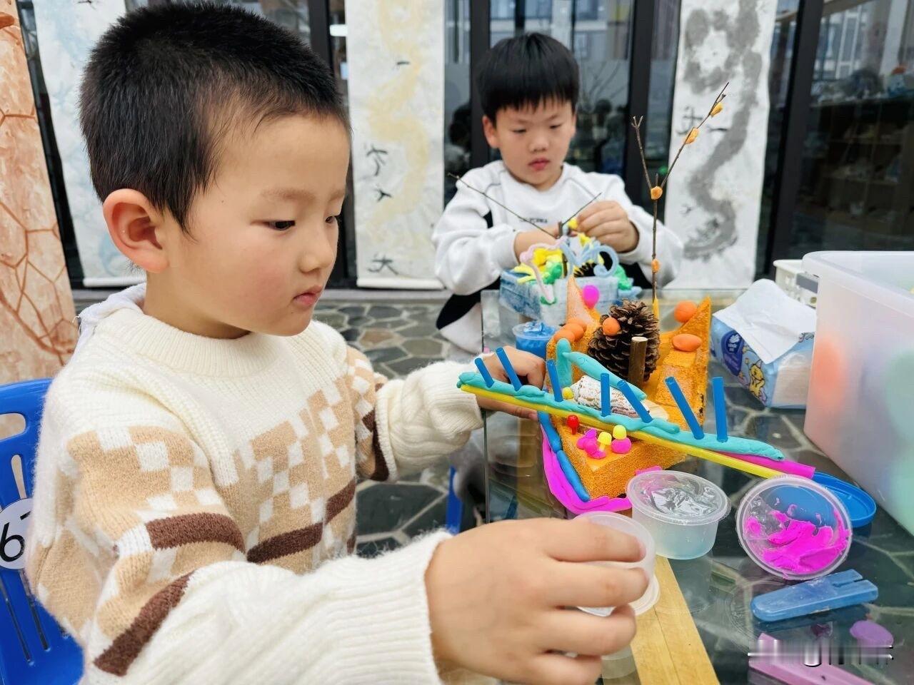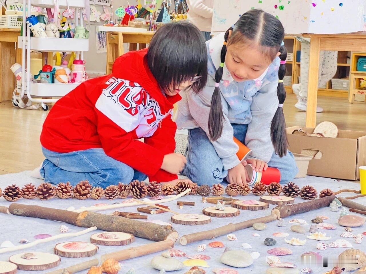 孩子们用锅碗瓢盆当乐器,用吸管、粘土打造魔法森林,自由发挥想象力。户外玩沙玩水、泥巴厨房、多元工坊,大家自主探索、合作游戏。