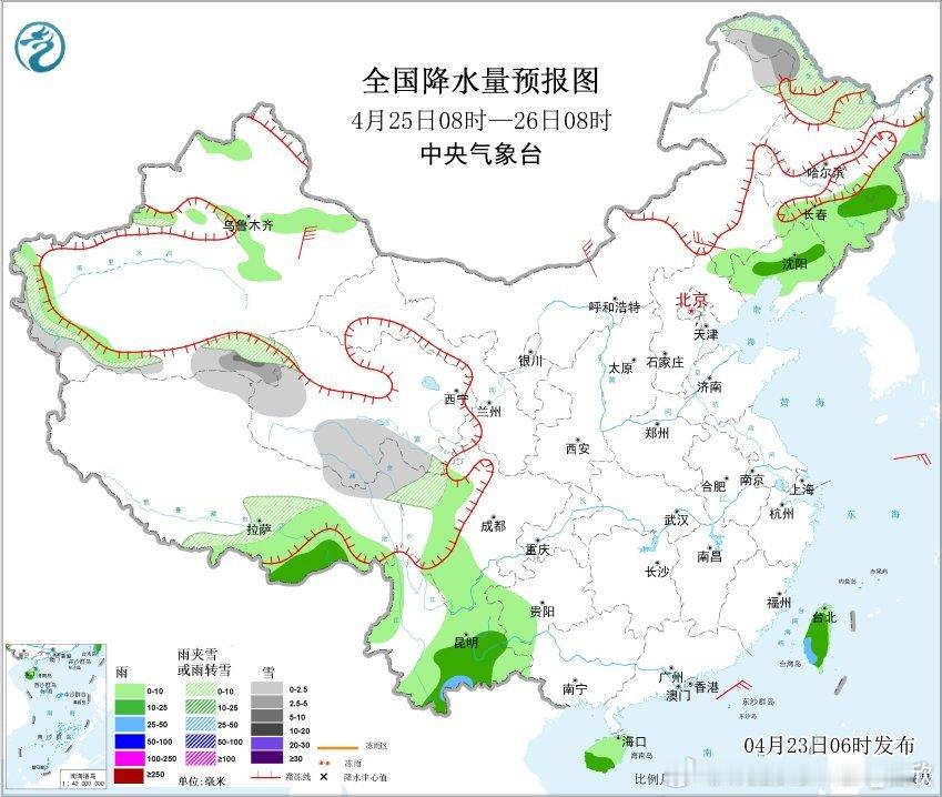预计4月24日08时至25日08时,华南南部、福建东南部、海南岛、台湾岛等地部分地区有中到大雨,其中,广东南部、海南岛东北部等地部分地区有暴雨。预计4月25日08时至26日08时,东北地区中南部、西藏东南部、云南、海南岛、台湾岛等地部分地区有小到中雨,局地有大雨。