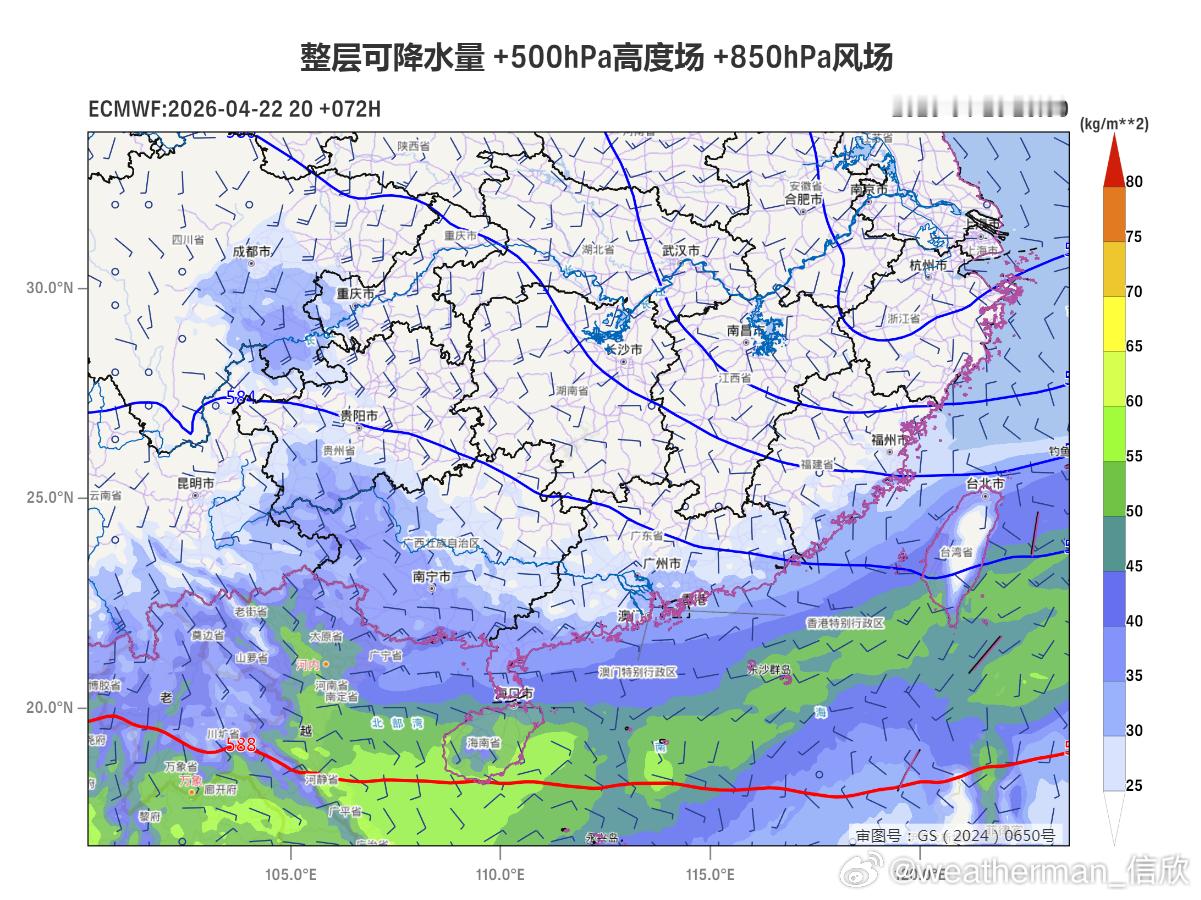 【强降水和强对流】昨天到今天,江淮江南华南一带,因为受到低涡切变线影响,出现了大范围降雨。其中今晨随着切变线南压,在广西南部等地出现了短时强降雨。今后3天,强降雨带继续随着切变线南压,今明在华南形成狭长的雨带。而江南地区降雨基本结束,迎来4天左右的降水停歇。