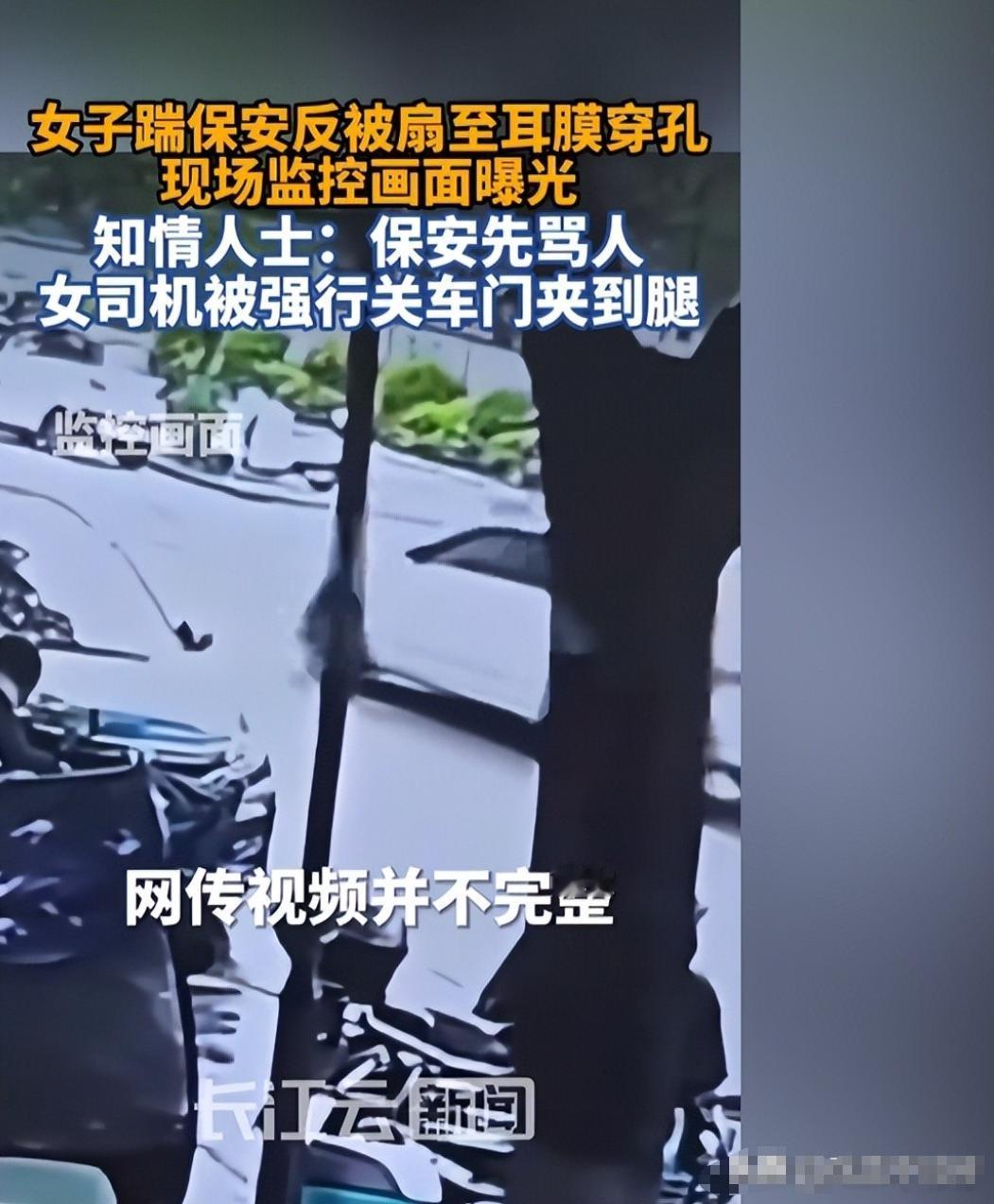 可完整监控曝光后,事情完全不一样了:保安先辱骂、敲打车窗,还两次强行关车门夹住了女司机的小腿。女司机踹人是被夹后的应激反应,而保安那一巴掌,直接造成女司机左耳鼓膜穿孔。