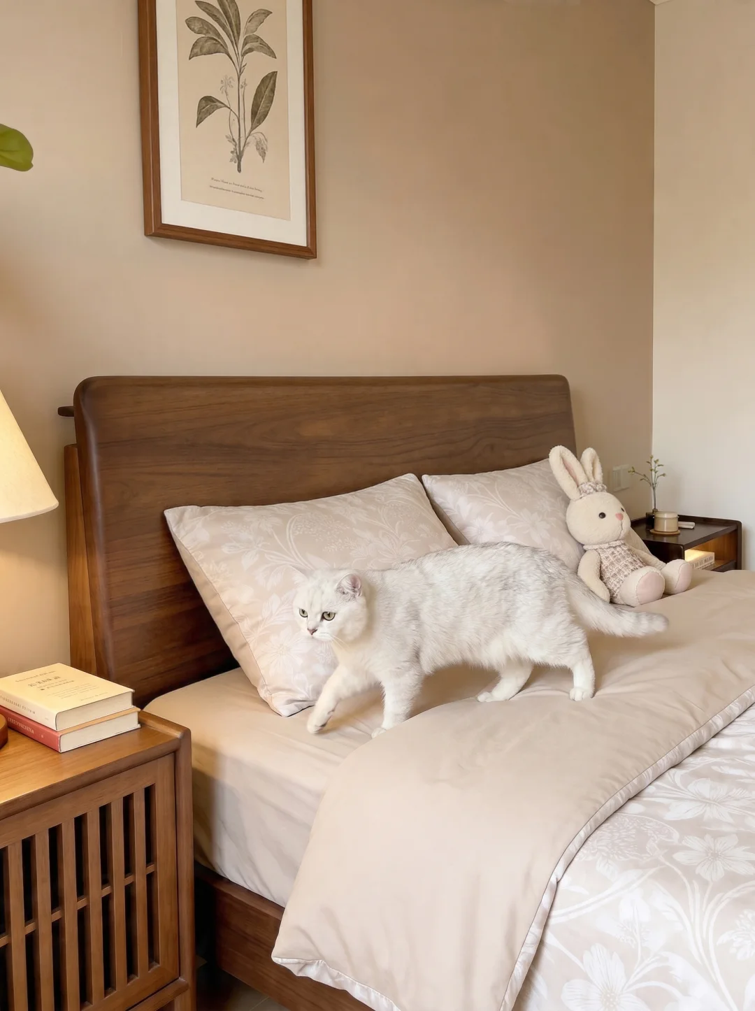 直到最近,新买的续写磐石实木床🛏️到货了,