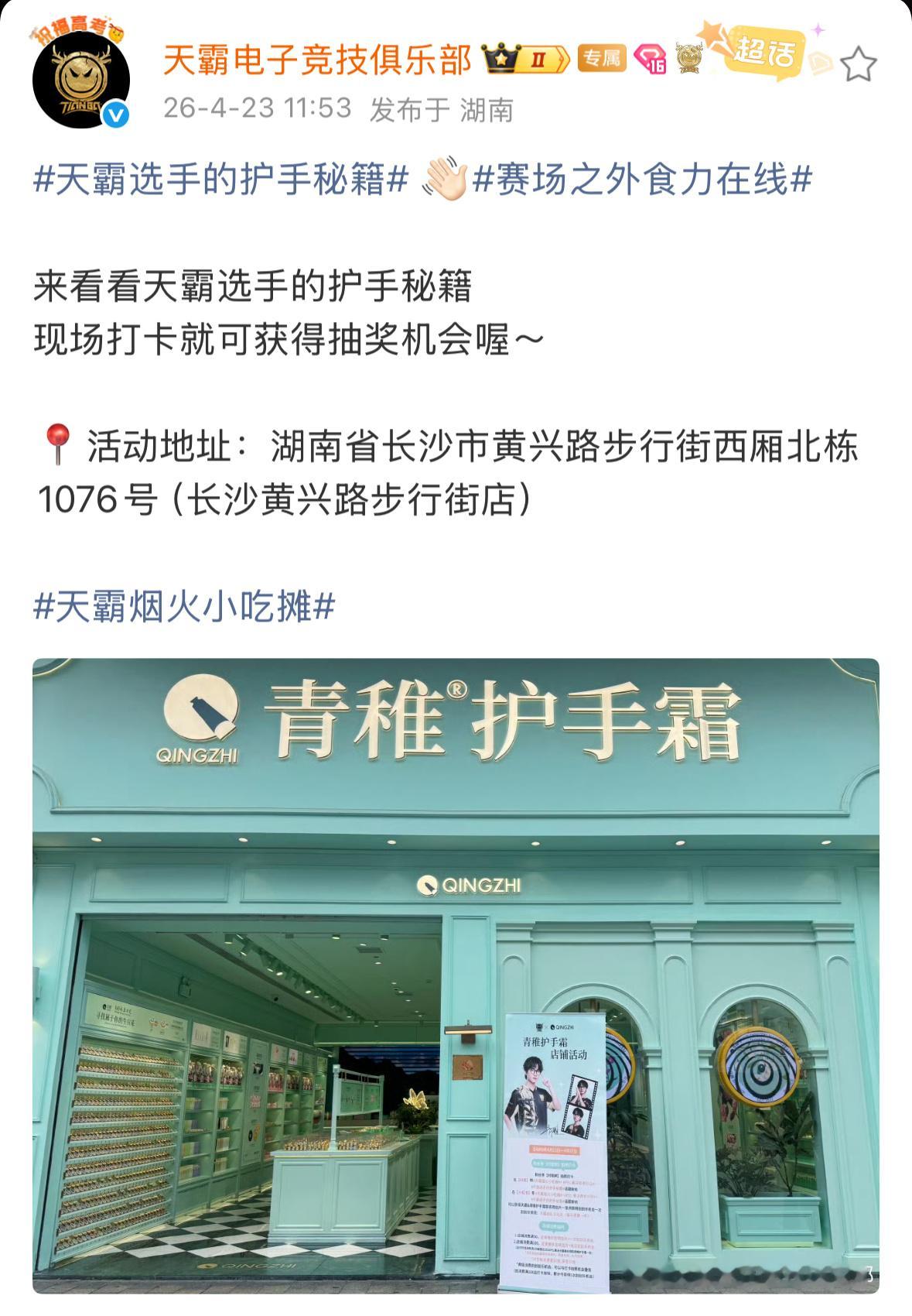 Tianba青稚 【青稚✖️青稚】在长沙的宝子们可以去打卡啦~天霸选手的护手秘