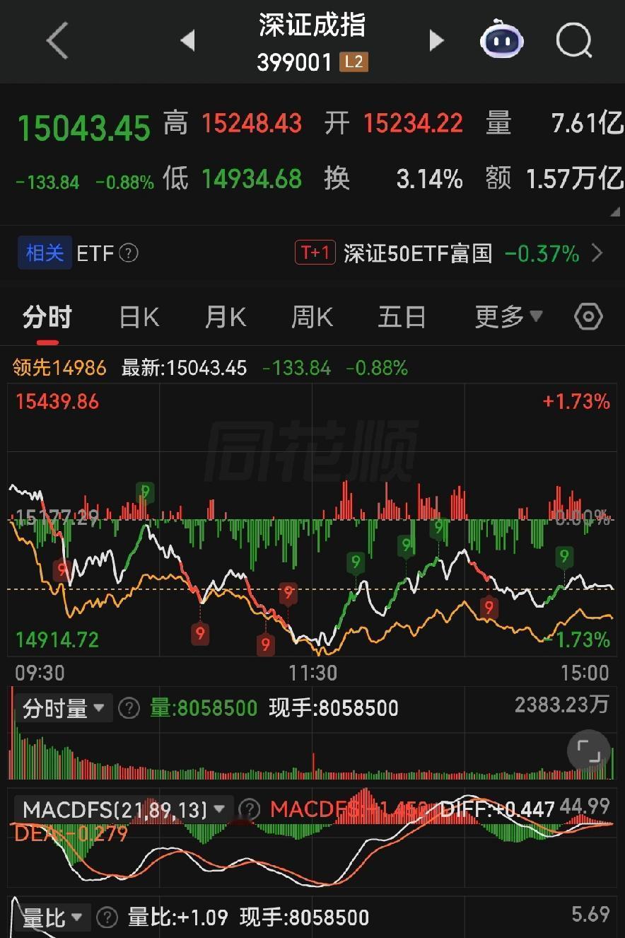 深证成指更惨,直接跌了0.88%,创业板指跌0.87%,科创50直接跌超1个点,科创小盘票遭得最凶。最扎心的是啥子?今天两市四千多只股票遭跌,只有一千多只红盘,涨跌比直接拉胯,好多朋友打开账户一看,指数没咋跌,自己的票亏得眼泪花儿都要流出来,这就是典型的赚了指数不赚钱,指数微跌票腰斩!