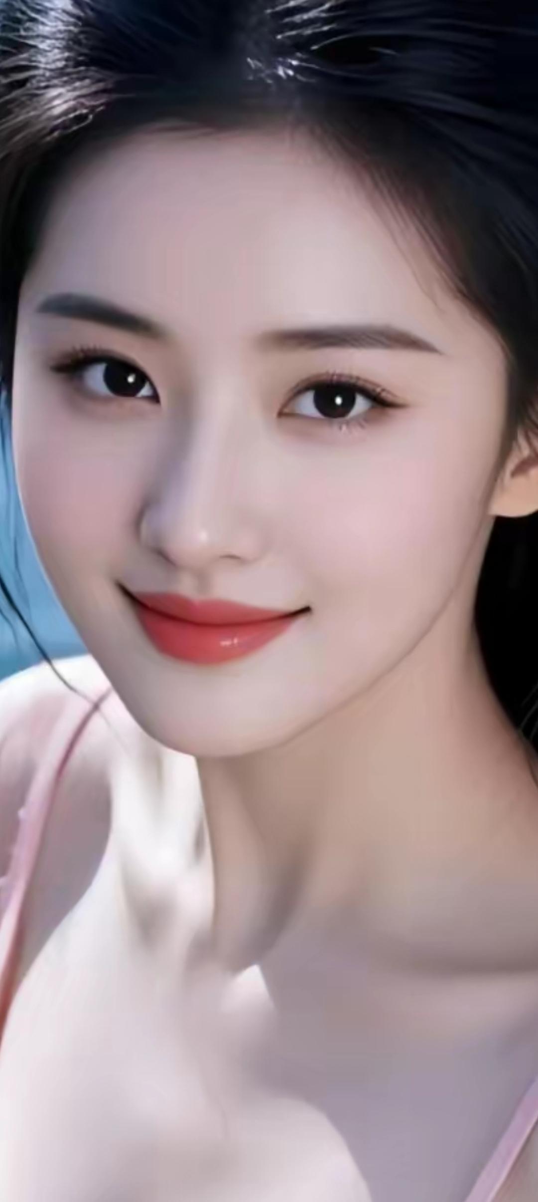 甜美少女心,温柔笑容,粉色吊带裙,夏日清新风
