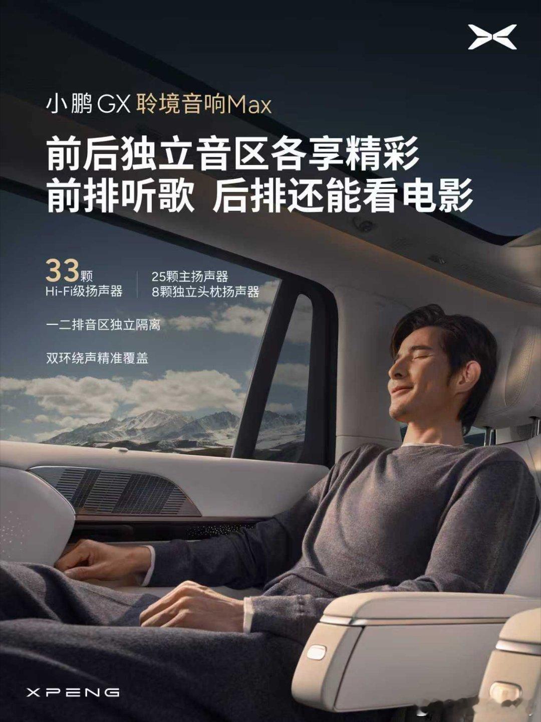 小鹏GX全车33个扬声器小鹏GX后排看片前排也能听歌2022款g9的丹拿音响,可以说是小鹏造车史的巅峰,用料足,效果好,可以称作后无来者。没想到这次gx的全栈自研的“聆境音响Max”系统更强。