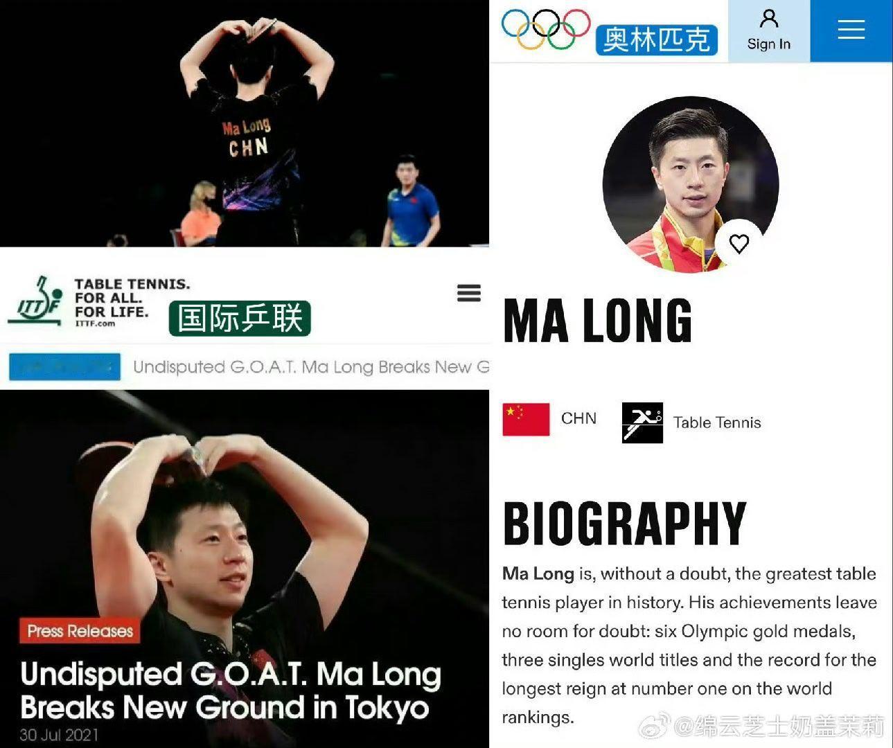 国际乒联称马龙是goat 按照这种统计方式的话官方多少也给正名了一点:哪怕是现在