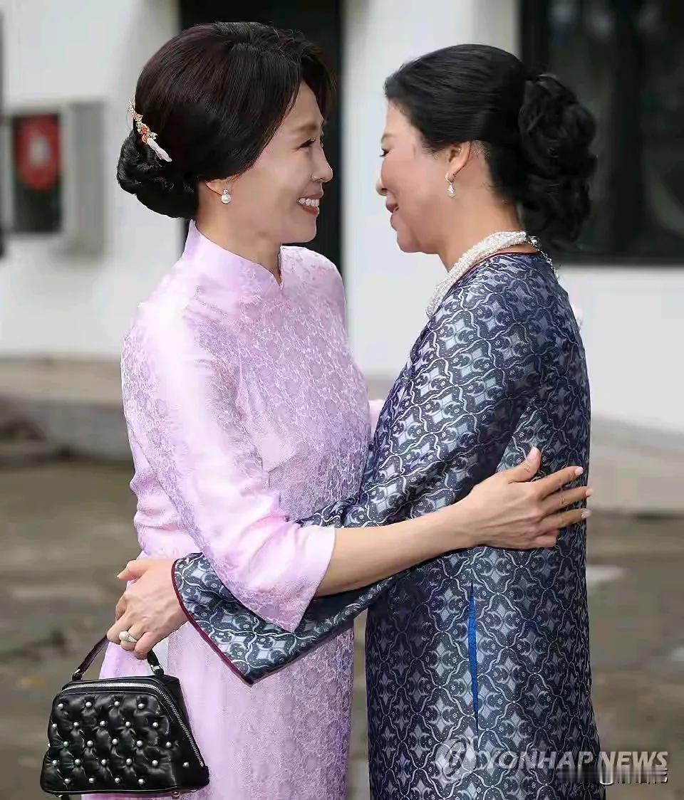 韩国第一夫人金惠景与越南第一夫人吴氏芳黎在河内民族学博物馆开展联谊活动,亲切互动。
