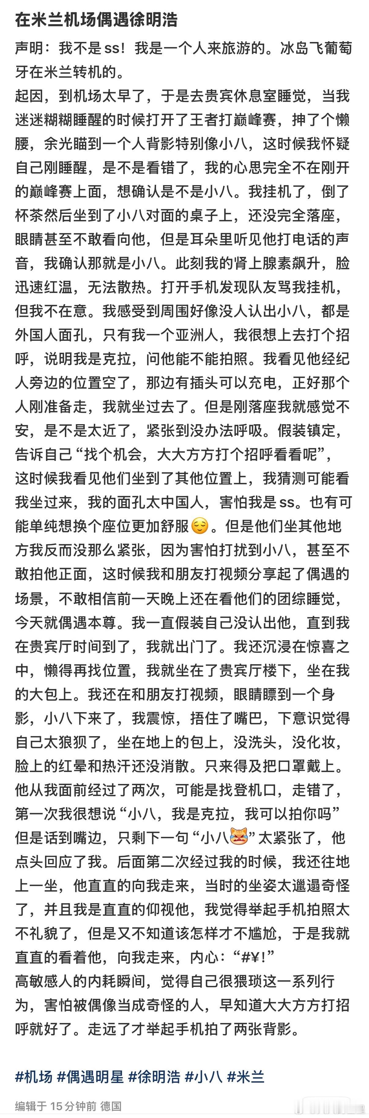米兰机场偶遇徐明浩网友米兰机场偶遇徐明浩 网友就这样在米兰机场偶遇徐明浩