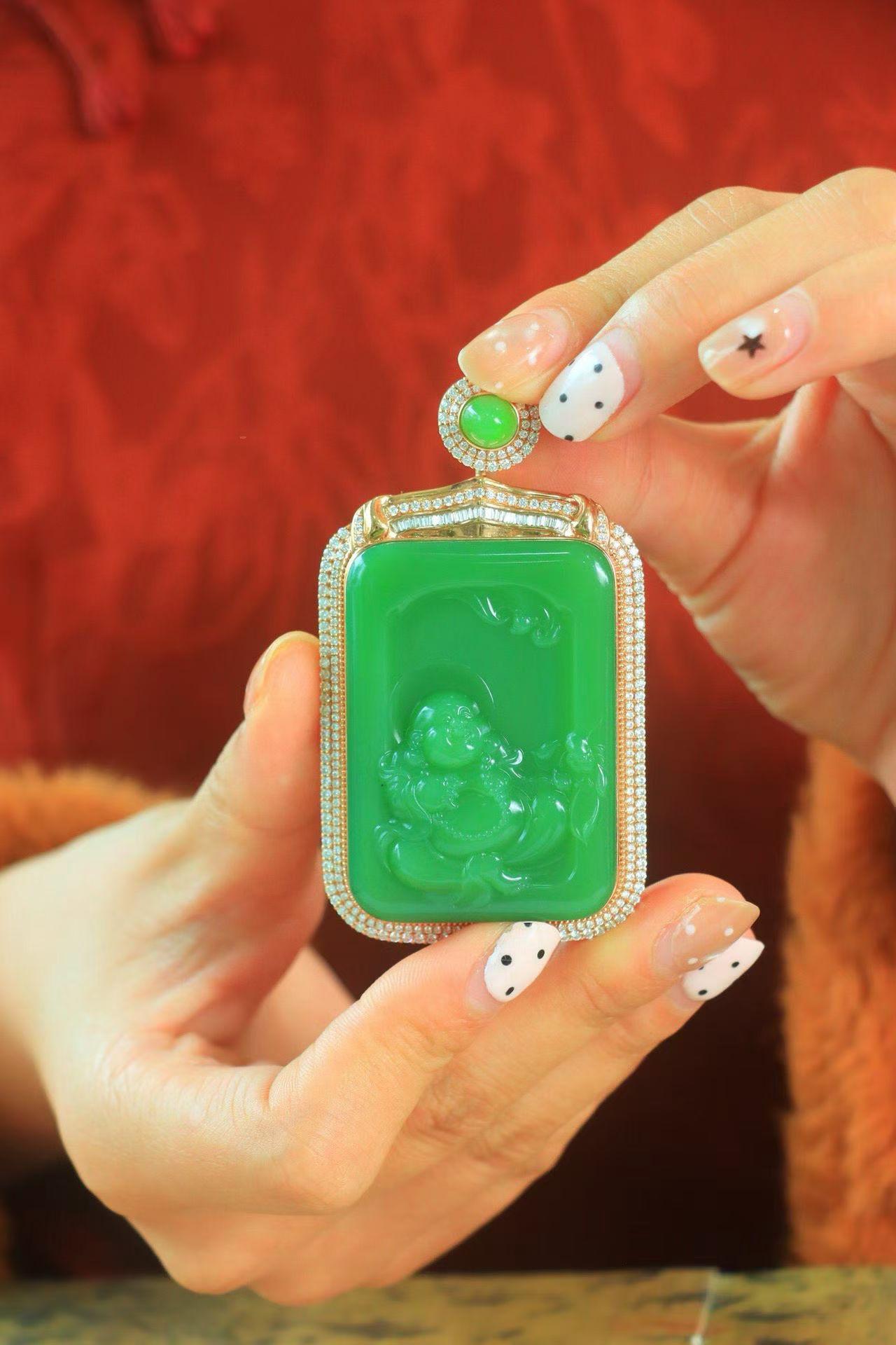 精品🍀和田玉老坑碧玉,18k金镶嵌,玉质温润细腻,油性十足,☁️精工雕琢弥勒笑佛,笑古笑今,凡事付之一笑;大气舒展,笑佛开怀大笑,喜气洋洋,🍃寓意无忧无虑,笑口常开。