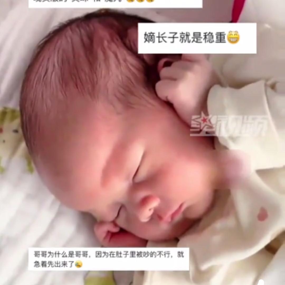 画面里两个小宝宝同款襁褓、同款睡姿,年龄只差几秒,模样更是几乎一模一样,可气场却截然不同,反差感直接拉满。