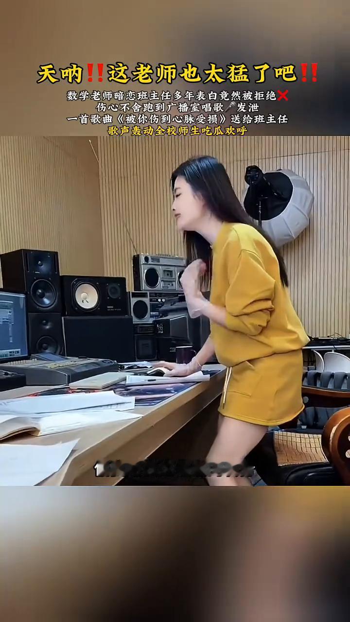天呐!这老师也太猛了!数学老师暗恋班主任多年表白竟然被拒绝,伤心不舍跑到广播室唱歌发泄。一首歌曲《被你伤到心脉受损》送给班主任,歌声轰动全校师生吃瓜欢呼。