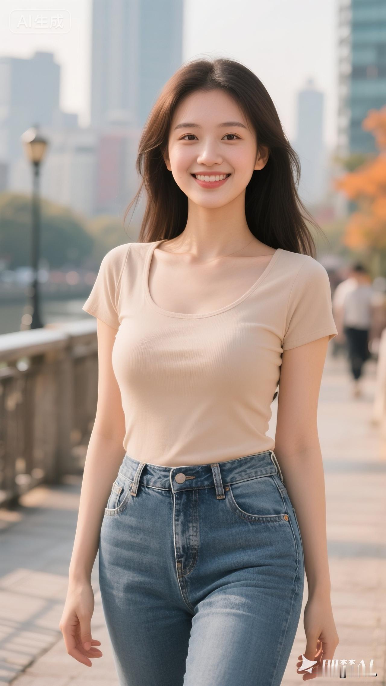 贴身不紧绷的T恤+百搭牛仔,出门旅行穿它,舒服又上镜。