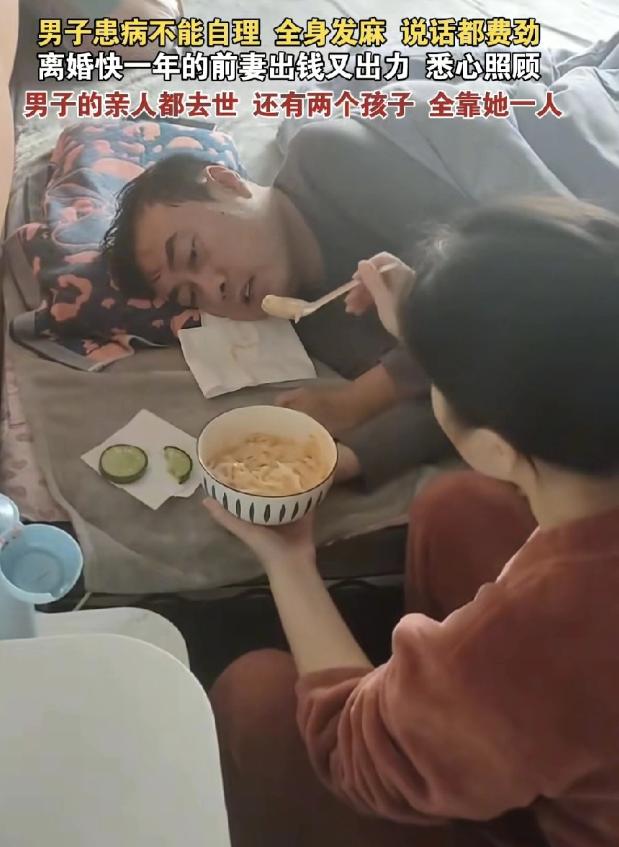 躺在床上的男人连吞咽都费力。这本是个寻常的伺候病患的场景,可真正让人五味杂陈的是这俩人的关系——那是她去年刚离了婚的前夫。