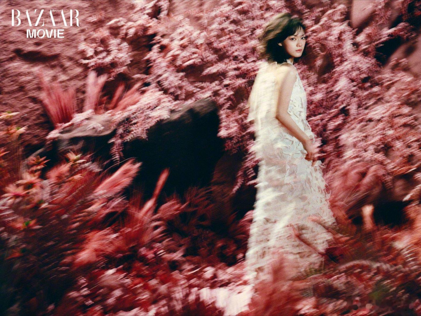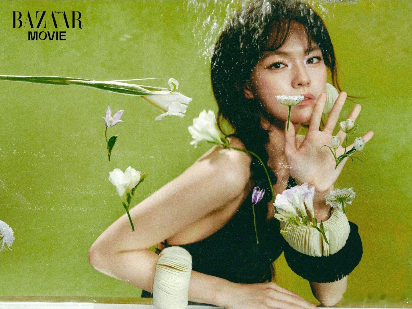 文淇在芭莎电影五月刊,春日与花,绽放的生命力。芭莎电影文淇盛春之年五月刊封面
