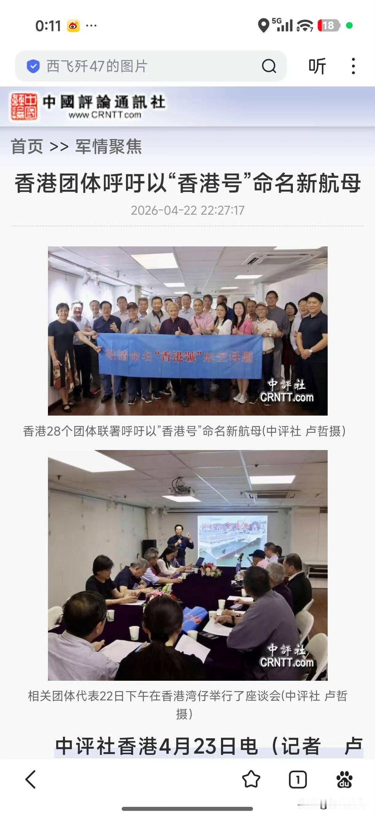 香港民间团体呼吁以“香港号”命名新航母。 这是好事,说明香港人的家国情怀越来越