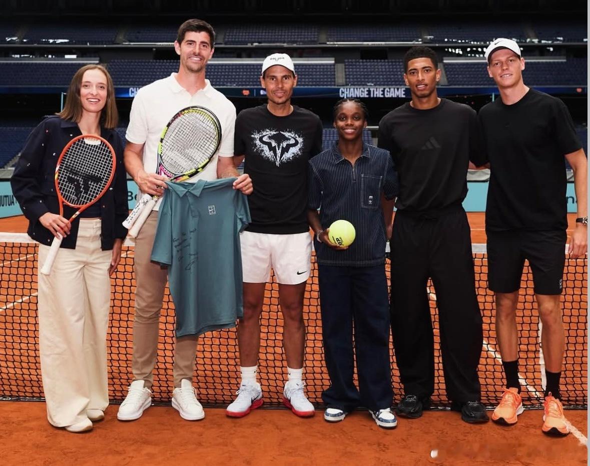 斯瓦泰克!昨天在马德里1000赛完赛之后,带着团队(教练罗伊格、体能师Maciej和击球搭档Tomaz)一起参与了伯纳乌球场的活动!同时还和纳达尔、辛纳、穆古鲁扎、贝林厄姆、库尔图瓦一起合影!wta