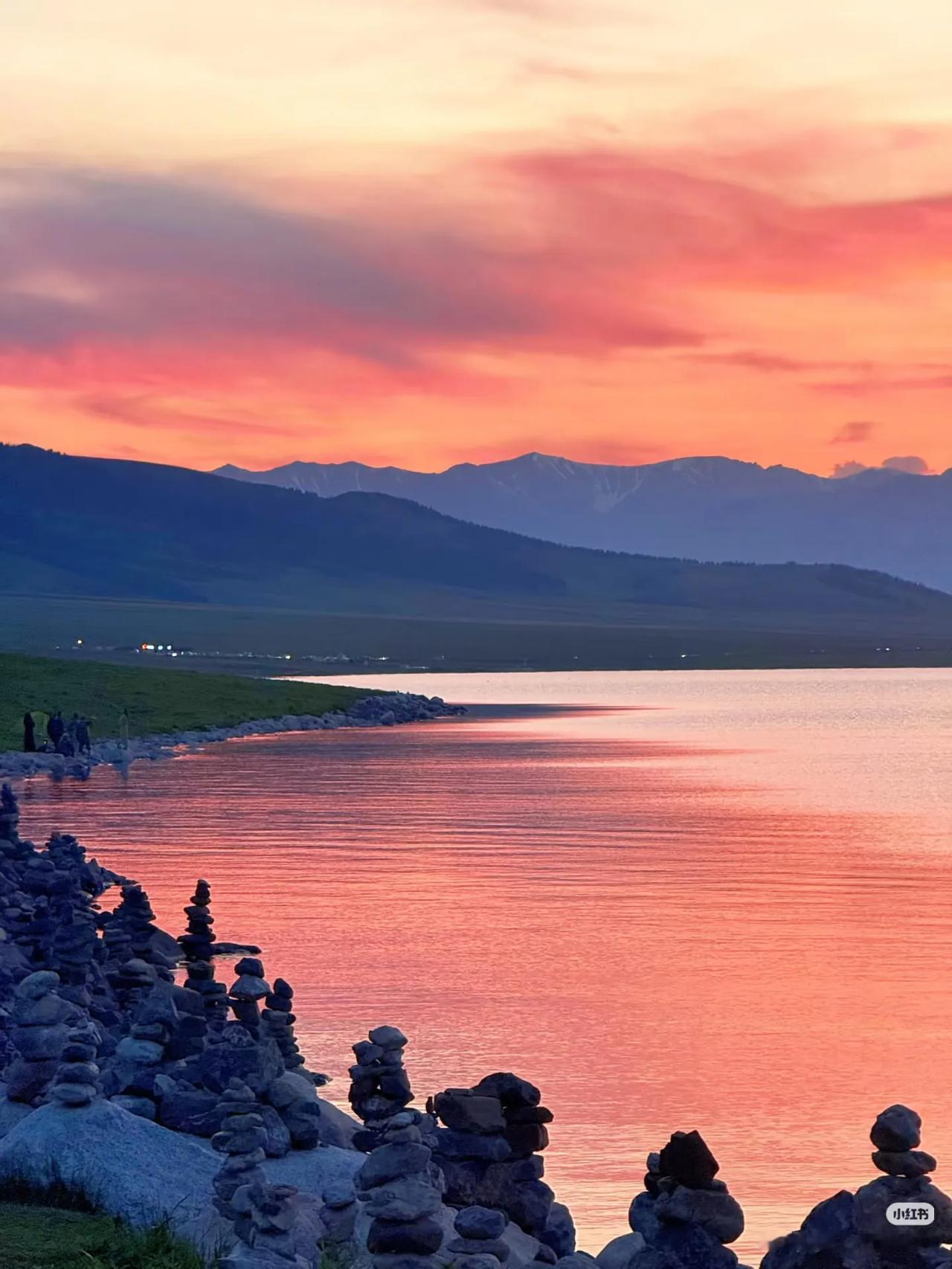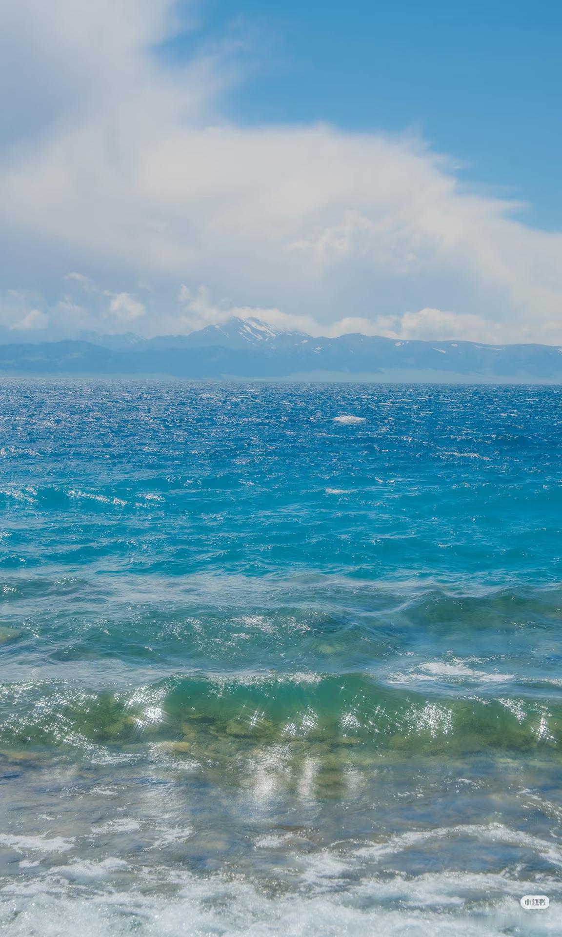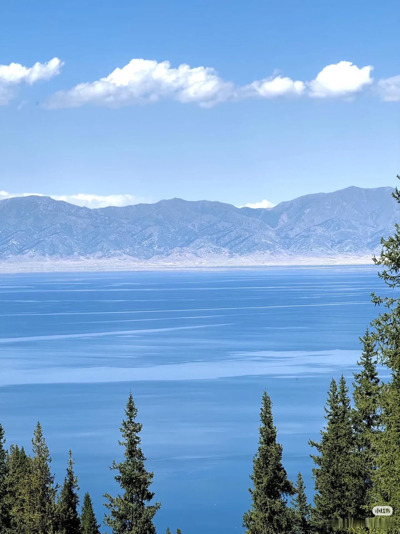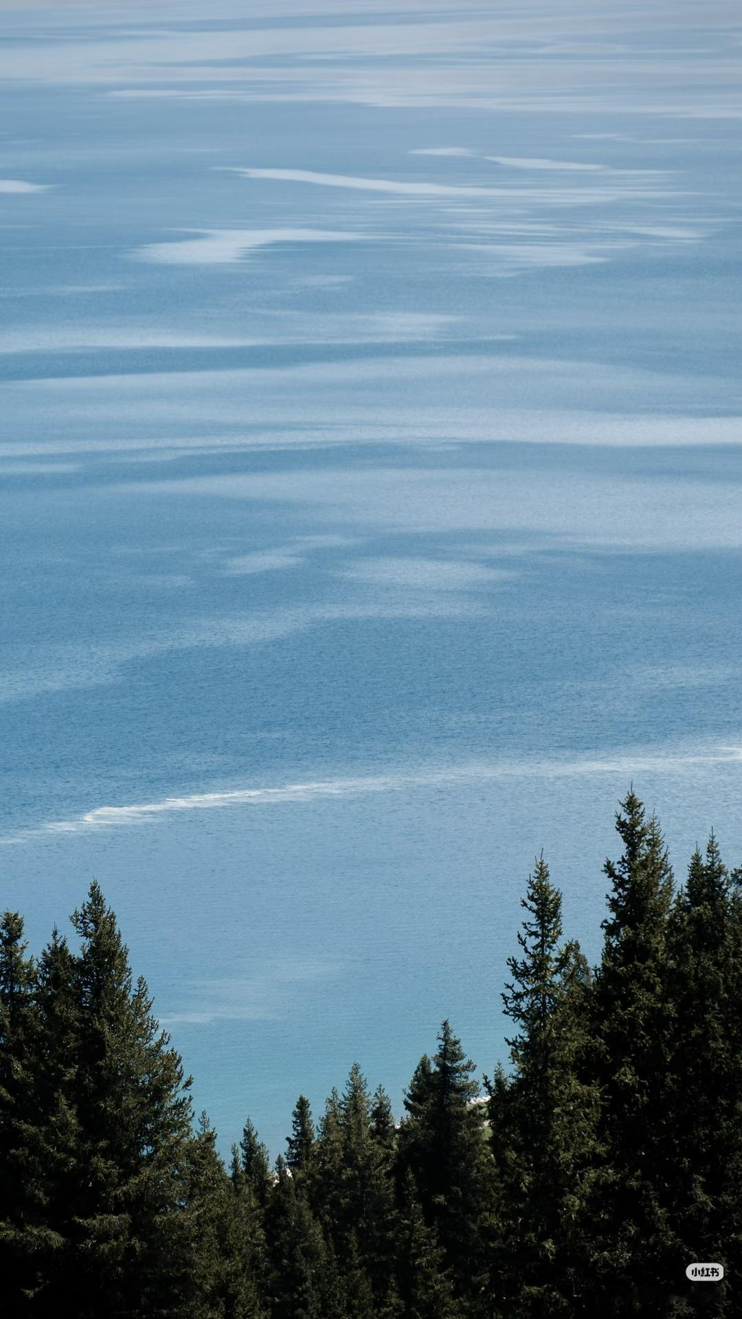 第一个停车点,沿着栈道走到湖边,可以看到雪山,草地,风车,看塞湖东岸3600米主峰。