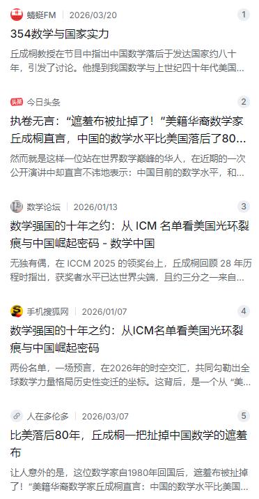 然而,在近期的一次公开场合,这位在中国深耕多年的数学大师却犀利地指出:“我国的数学水平目前整体落后欧美发达国家约八十年,大约还处于美国上世纪四十年代的水平”。这句话一出,瞬间引爆了舆论场。在很多国人看来,中国孩子的数学成绩在全球“大杀四方”,奥数更是常年霸榜,怎么可能如此不堪?面对外界的质疑,丘成桐并没有急于反驳,而是用自己的亲身感受给出了最真实的答案。