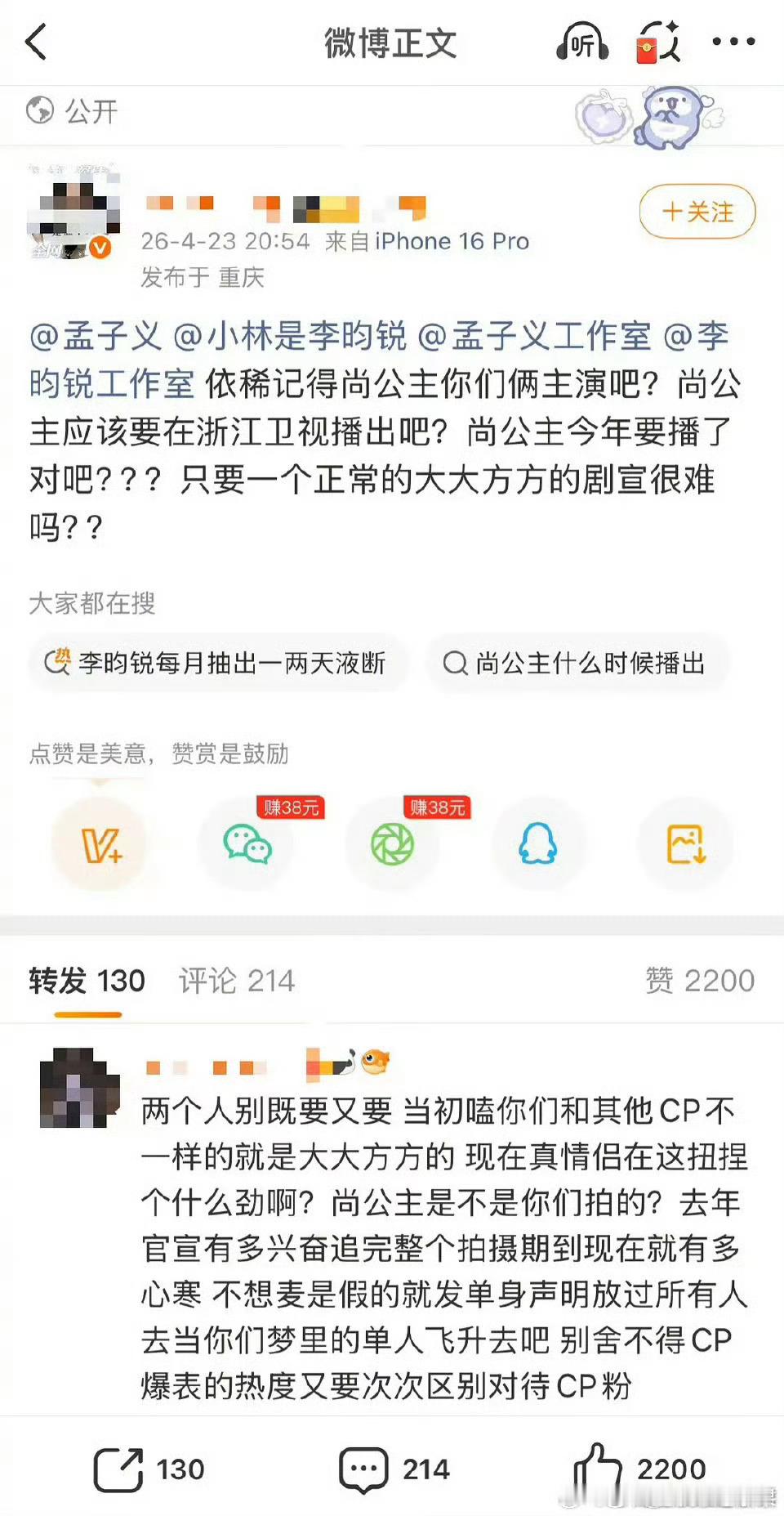 昀牵孟绕cpf开始维权 原因疑似是因为跑男情侣特辑中 孟子义和李昀锐不在一个组
