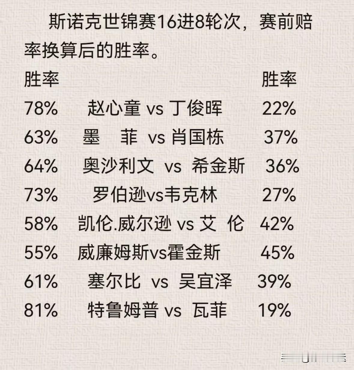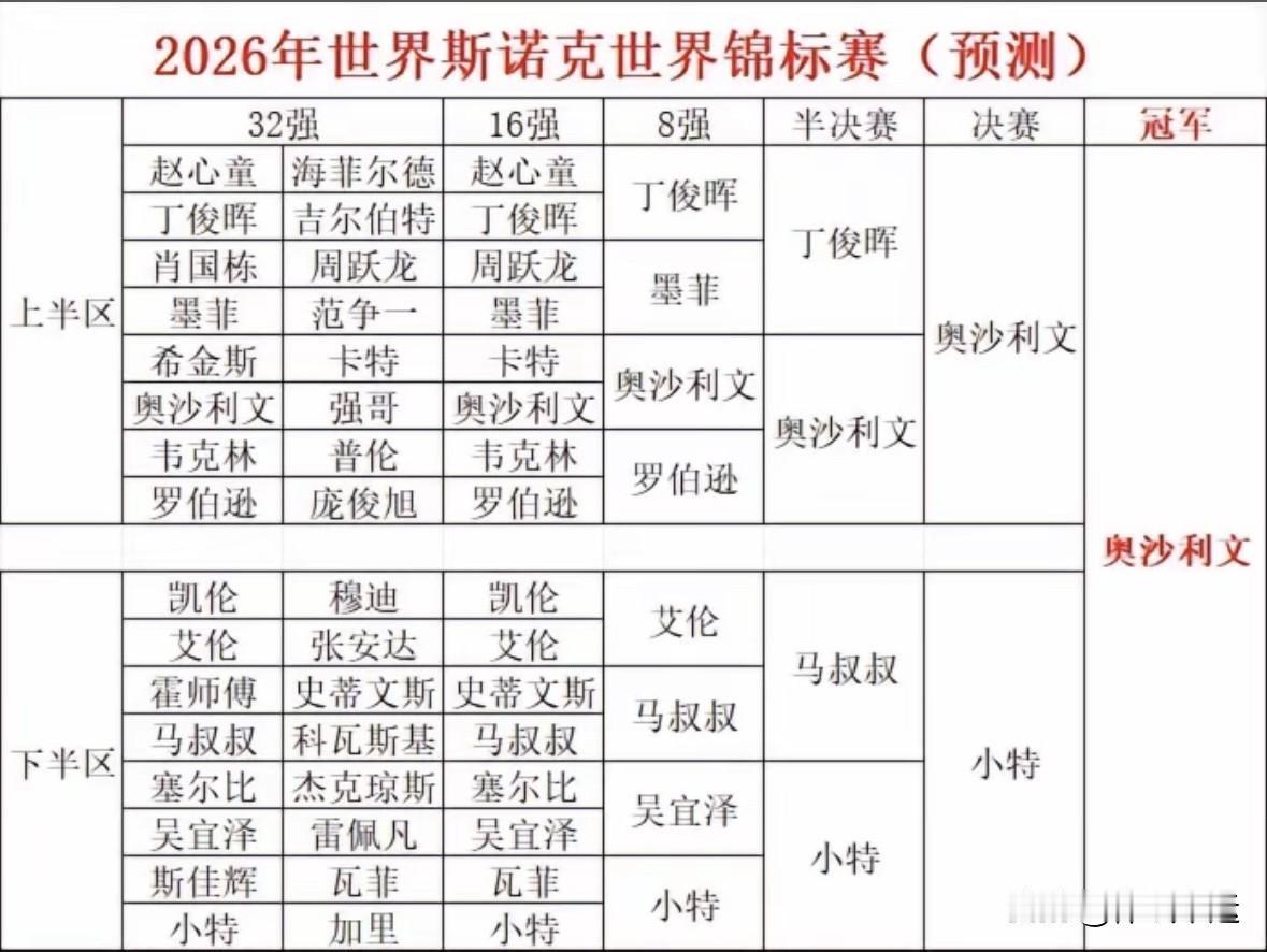 ✅预测四强:丁俊晖、奥沙利文、威廉姆斯、吴宜泽!