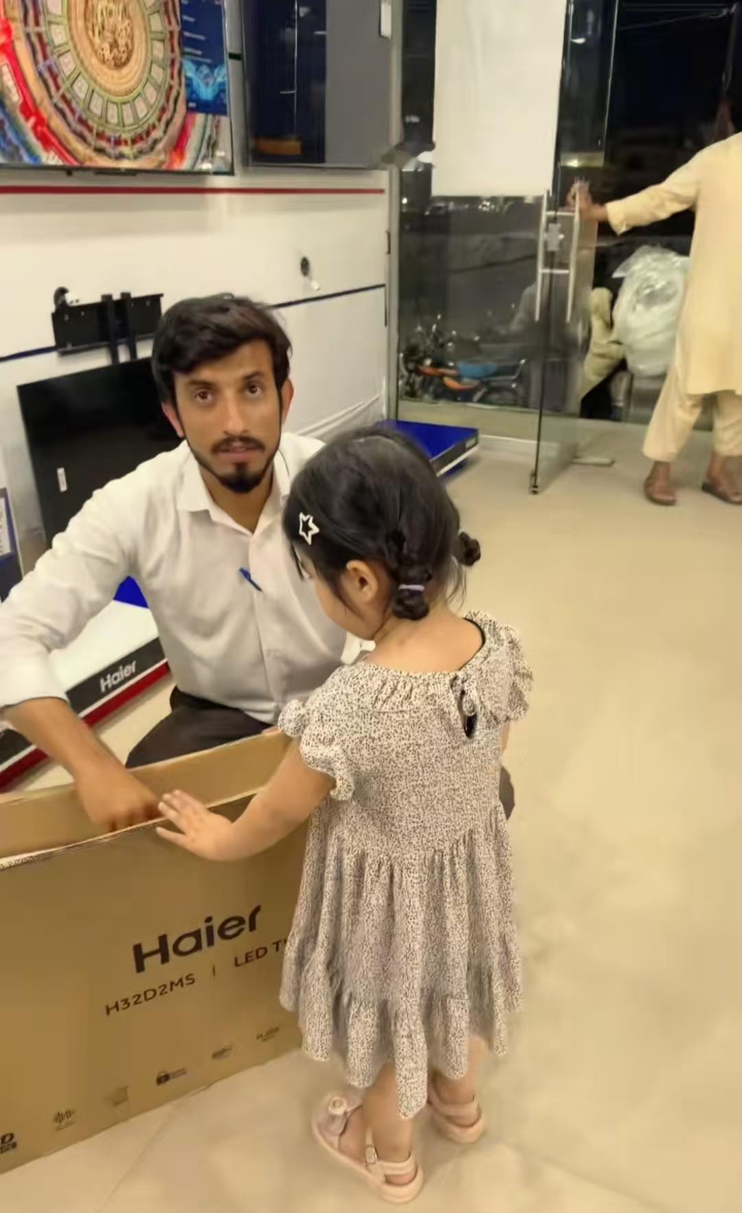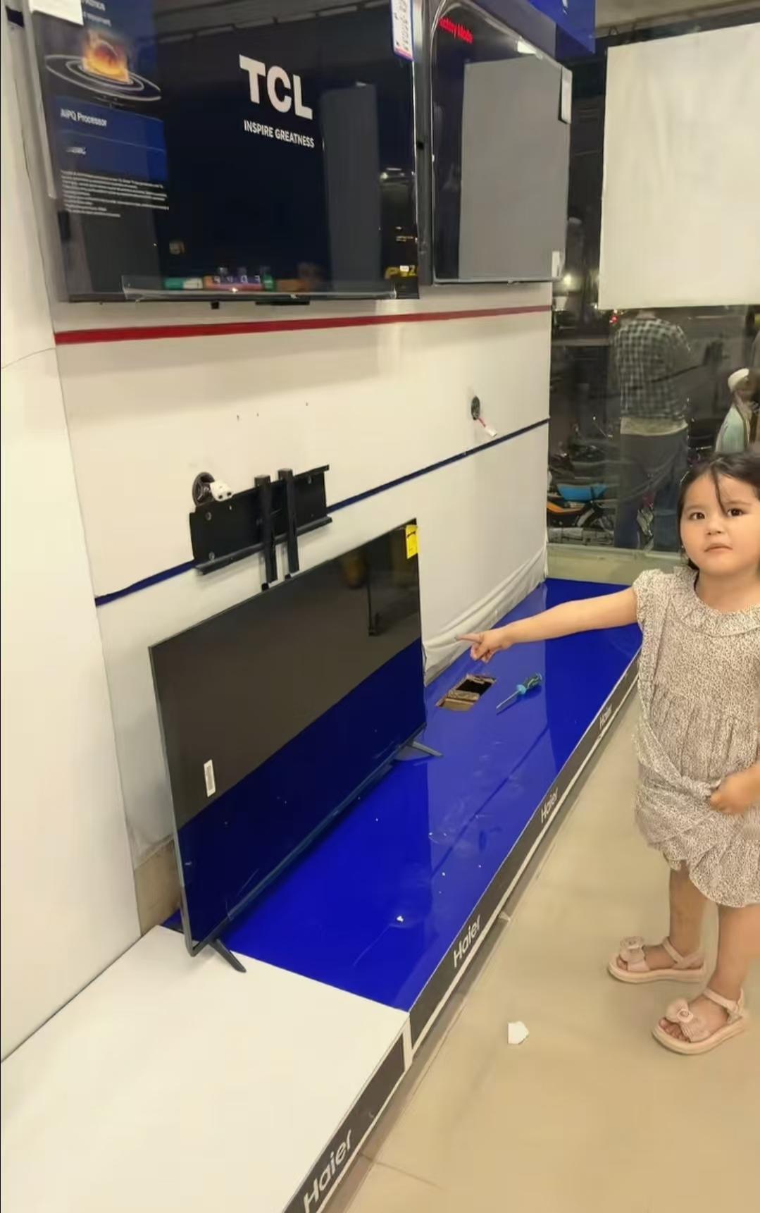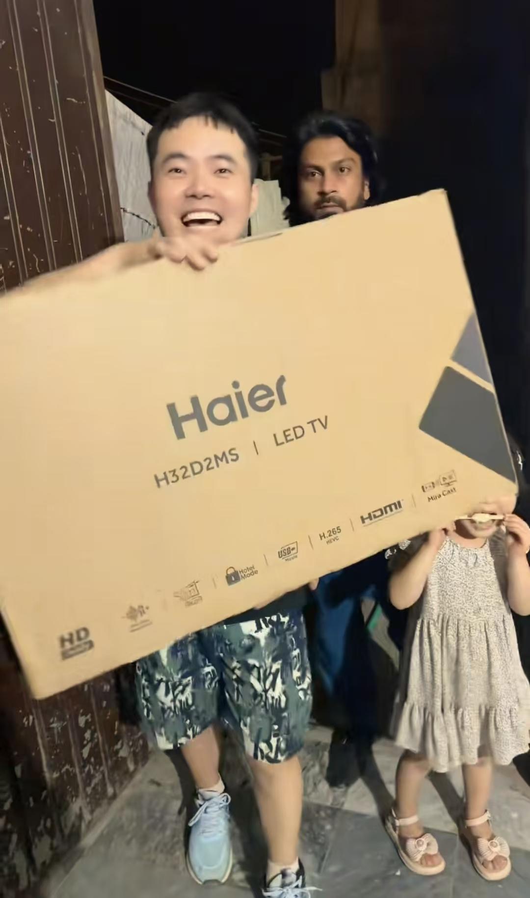 然后他去的店更有意思,电视跟摩托车放一块卖,货架上全是咱们国产的小米、海尔、TCL,最后选了海尔32寸的搞掂,拉回去岳母跟亲友都撒花欢迎,这画面,巴适得很。