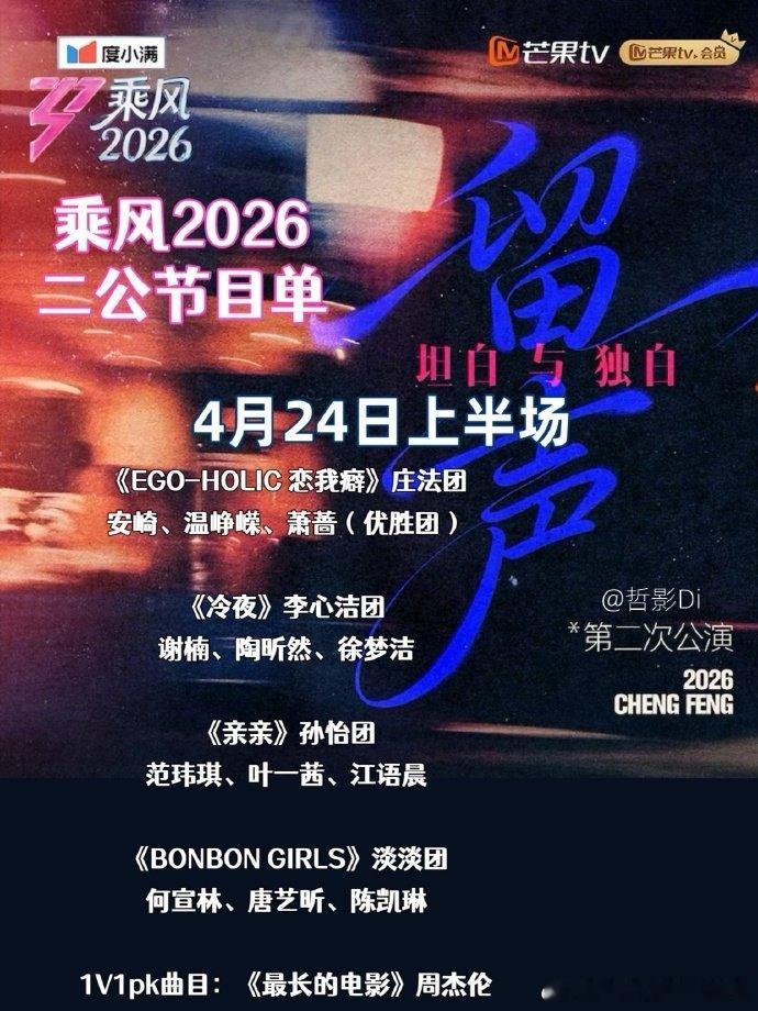 乘风2026二公歌单从温柔慢歌到高能唱跳,风格丰富,这次二公绝对看点爆棚乘风20