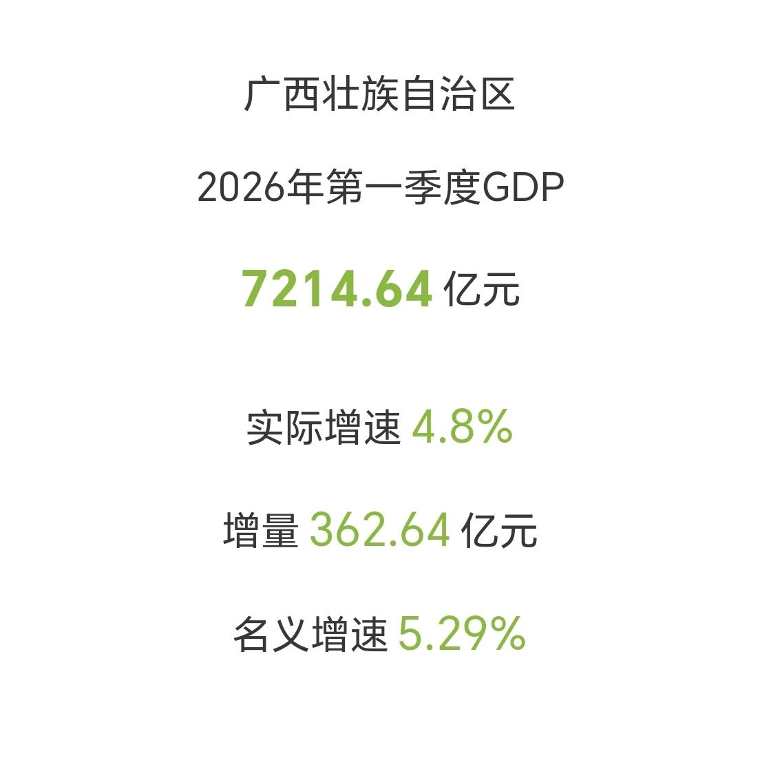 【2026年一季度,广西GDP超过7200亿元,增量超360亿元】