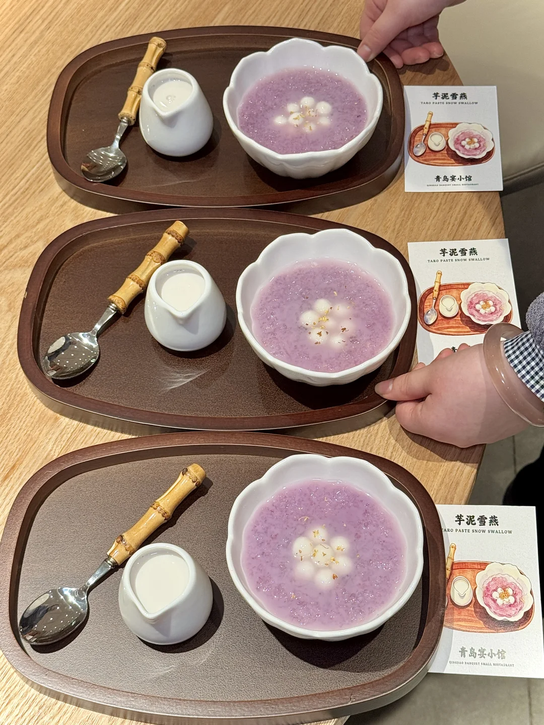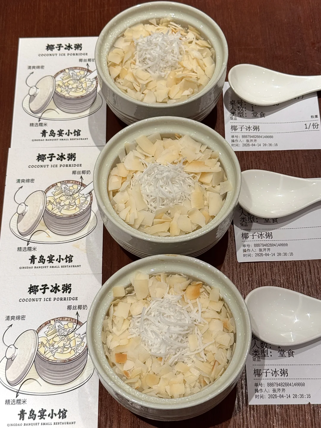 感谢本地人推荐的这家(宴小馆)特意来打卡真的没失望!椰子冰粥、芋泥雪燕、咸蛋黄金沙鸡翅、怪味里脊、山楂排骨耗儿粉…各种正宗青岛美食小吃和都好好吃🤤建议来五四广场的姐妹们打卡这家!!!