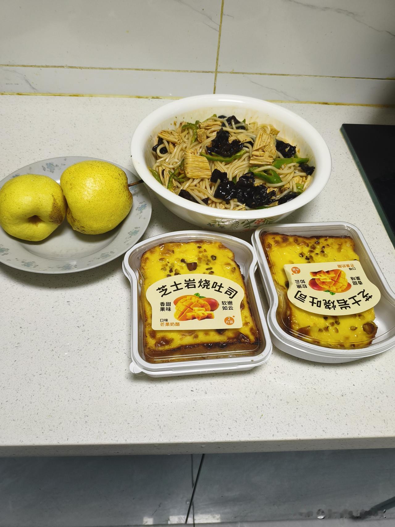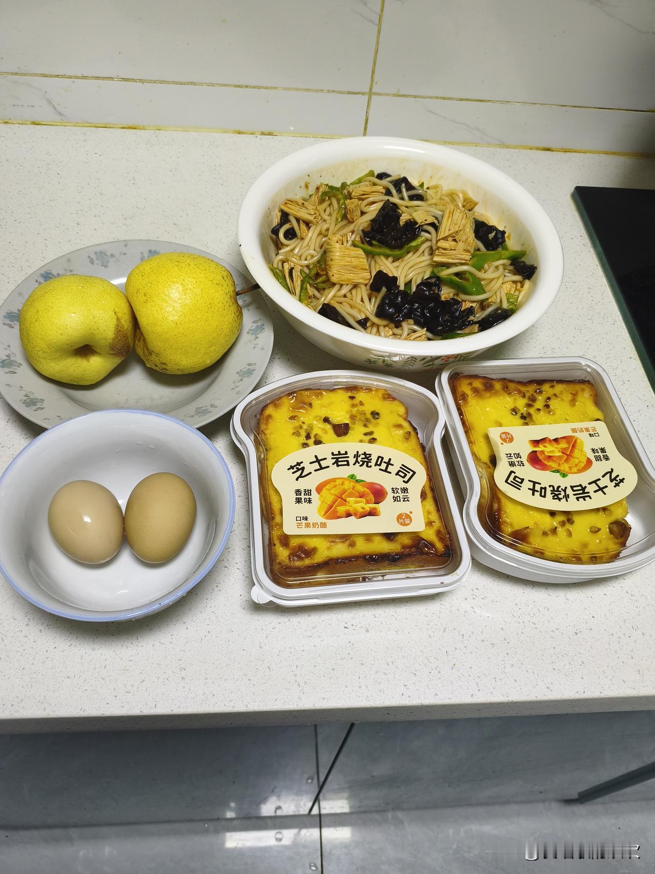 我计划,今天早餐就吃一块面包,半碗菜。如果不够,就再吃一个梨子。